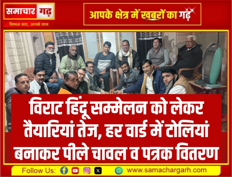 विराट हिंदू सम्मेलन को लेकर तैयारियां तेज, हर वार्ड में टोलियां बनाकर पीले चावल व पत्रक वितरण