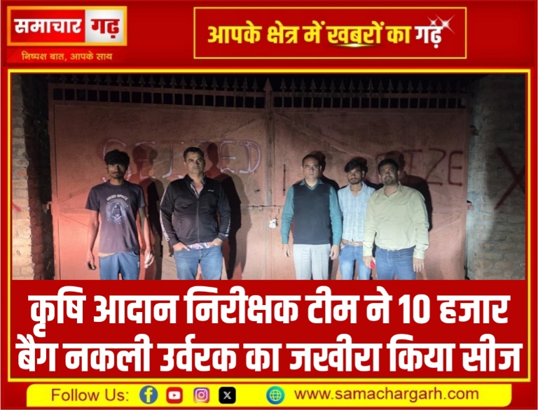 कृषि आदान निरीक्षक टीम ने 10 हजार बैग नकली उर्वरक का जखीरा किया सीज