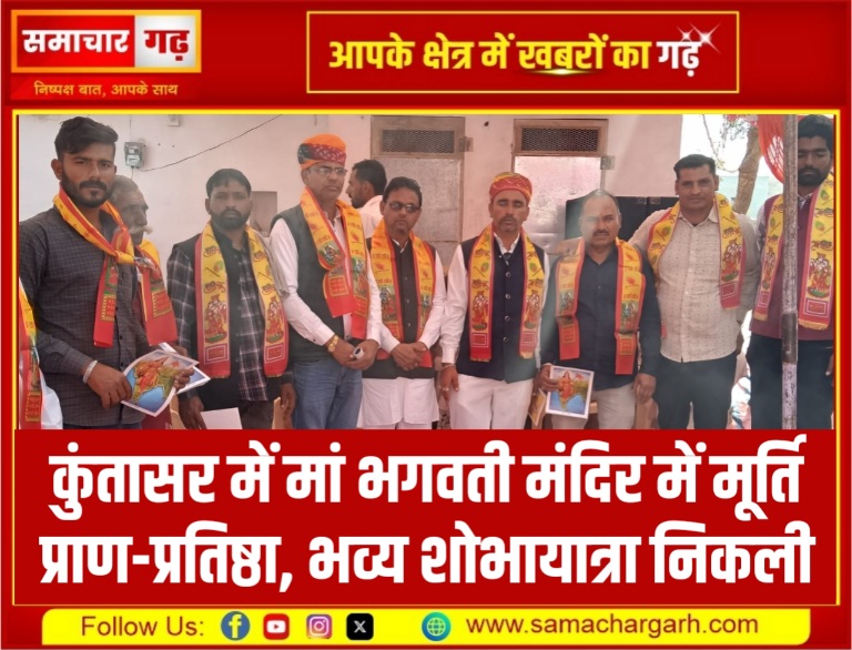 कुंतासर में मां भगवती मंदिर में मूर्ति प्राण-प्रतिष्ठा, भव्य शोभायात्रा निकली समाचार गढ़ | श्रीडूंगरगढ़ 7 फरवरी 2026। श्रीडूंगरगढ़ उपखंड के गांव कुंतासर के गुवाड़ स्थित मां भगवती मंदिर में…