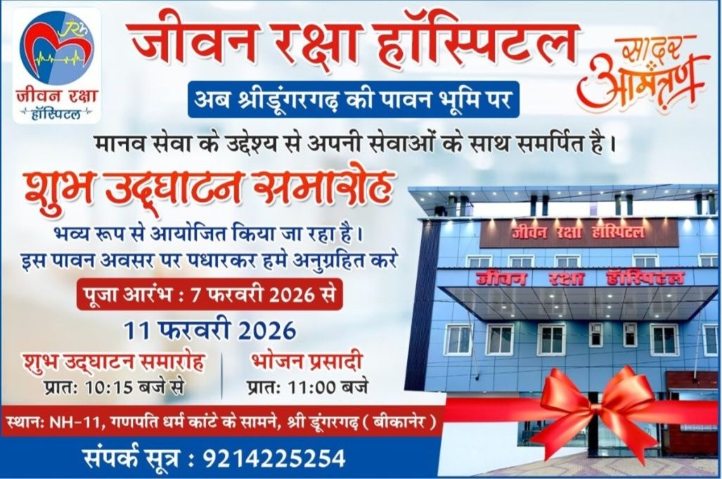 समाचार गढ़, 7 फरवरी 2026, श्रीडूंगरगढ़। श्रीडूंगरगढ़ हाईवे पर नवनिर्मित जीवन रक्षा हॉस्पिटल में चिकित्सा सेवाओं की औपचारिक शुरुआत 11 फरवरी को उद्घाटन समारोह के साथ की जाएगी। अस्पताल परिसर…