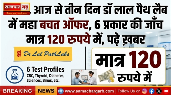 आज से तीन दिन डॉ लाल पैथ लैब में महा बचत ऑफर, 6 प्रकार की जाँच मात्र 120 रुपये में, पढ़े ख़बर