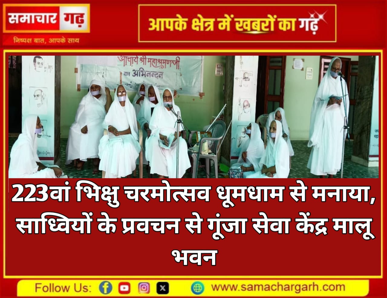समाचार गढ़ 5 सितंबर 2025 सेवा केंद्र मालू भवन में शुक्रवार को 223वां भिक्षु चरमोत्सव बड़े हर्षोल्लास के साथ मनाया गया। साध्वी संगीतश्री और डॉ. साध्वी परमप्रभा के सान्निध्य में आयोजित इस समारोह में श्रद्धालुओं की बड़ी संख्या में उपस्थिति रही।