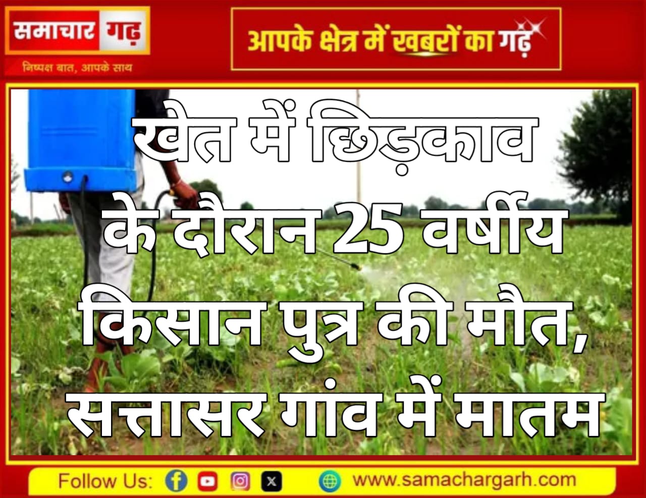 सत्तासर गांव में गुरुवार सुबह एक दर्दनाक घटना ने पूरे इलाके को स्तब्ध कर दिया। 25 वर्षीय शिवसिंह पुत्र लिछमणसिंह अपने खेत में कीटनाशक का छिड़काव कर रहा था, तभी उसकी तबीयत अचानक बिगड़ गई। परिजन उसे तुरंत उपजिला अस्पताल लेकर पहुंचे, लेकिन चिकित्सकों ने उसे मृत घोषित कर दिया।