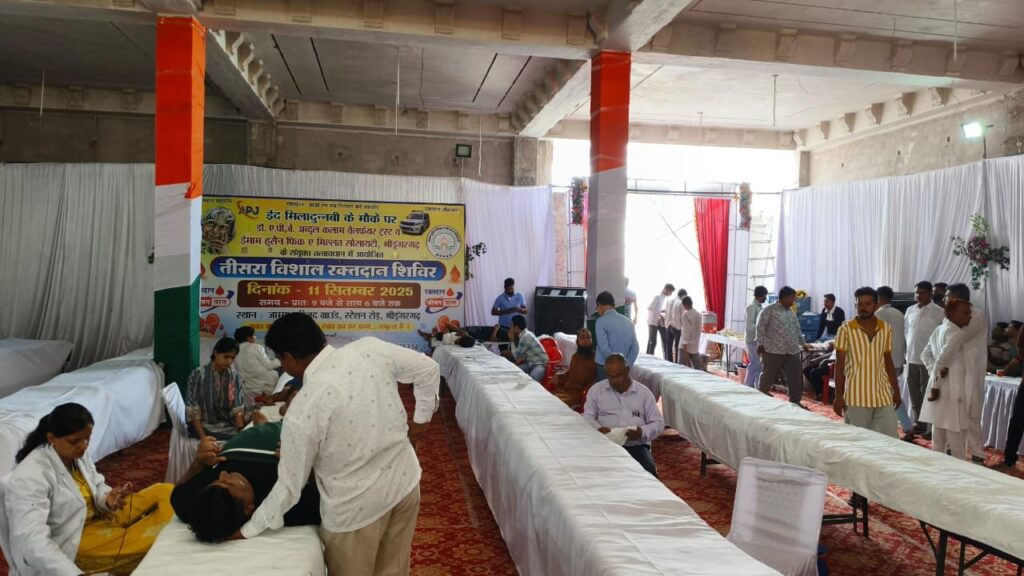 ईद मिलादुन्नबी के अवसर पर जहां लोग धर्म और आस्था के रंग में सराबोर रहे, वहीं श्रीडूंगरगढ़ ने इस अवसर को मानव सेवा के संकल्प के साथ मनाया। जामा मस्जिद प्रांगण में डॉ. एपीजे अब्दुल कलाम वेलफेयर ट्रस्ट एवं इमाम हुसैन फिक्र-ए-मिल्लत सोसायटी की ओर से आयोजित तीसरे विशाल रक्तदान शिविर ने मानवीय संवेदनाओं की मिसाल पेश की।