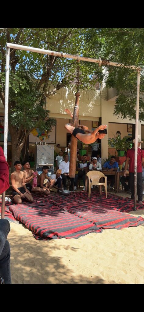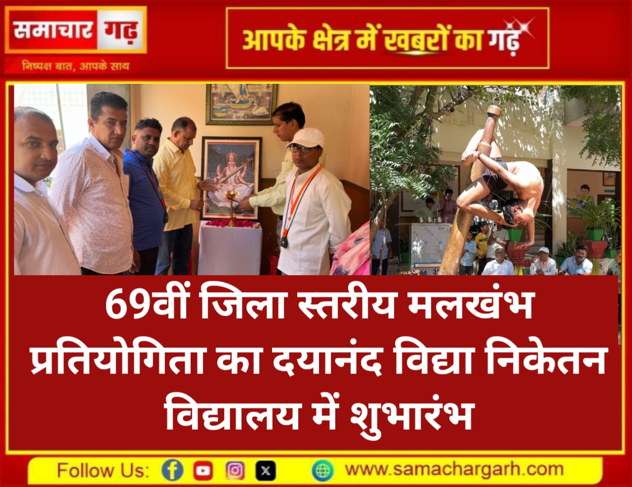 समाचार गढ़ 22 सितंबर 2025, श्रीडूंगरगढ़। 69वीं जिला स्तरीय मलखंभ प्रतियोगिता का आगाज आज दयानंद विद्या निकेतन विद्यालय में हुआ। उद्घाटन समारोह के मुख्य अतिथि जयपुर पब्लिक स्कूल व रमन आईटीआई के निदेशक कुम्भाराम तथा विशिष्ट अतिथि आर्यस्थली गुरुकुल के निदेशक अमित स्वामी रहे। कार्यक्रम की शुरुआत दीप प्रज्वलन से की गई।