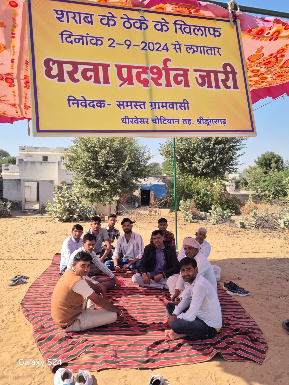 समाचार गढ़, 9 दिसम्बर 2024, श्रीडूंगरगढ़। धीरदेसर चोटियान गाँव में शराब ठेका बंद करने को लेकर चल रहा धरना आज अपने 99वें दिन में प्रवेश कर गया। ग्रामीणों का यह शांतिपूर्ण आंदोलन युवाओं, बुजुर्गों और बच्चों की सक्रिय भागीदारी से जारी है। लेकिन अब तक किसी भी प्रकार से ग्रामीणों की मांगों को नहीं माना गया है। आज के धरने में एडवोकेट श्याम सुंदर आर्य, गजानन्द शर्मा, चेतनराम चोटिया, केशराराम चोटिया, मुन्नीराम चोटिया, रामकिशन, सीताराम, विजयपाल चोटिया, हनुमान सांसी, रामकुमार और किशन चोटिया की विशेष उपस्थिति रही। इनकी उपस्थिति ने ग्रामीणों के हौसले को और मजबूत किया। गाँववासियों का कहना है कि वे अपनी मांग पूरी होने तक संघर्ष जारी रखेंगे। यह धरना समाज में शराब से जुड़ी समस्याओं के प्रति जागरूकता फैलाने का भी प्रयास है।