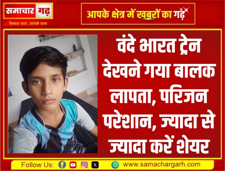 लापता बालक के चाचा श्रवण जाट ने बताया कि शीशपाल गुरुवार को स्कूल से घर लौटने के बाद वंदे भारत ट्रेन देखने रेलवे स्टेशन गया था, लेकिन उसके बाद से वह घर नहीं लौटा। परिजनों ने बताया कि किशोर टी-शर्ट और पेंट पहने हुए था।