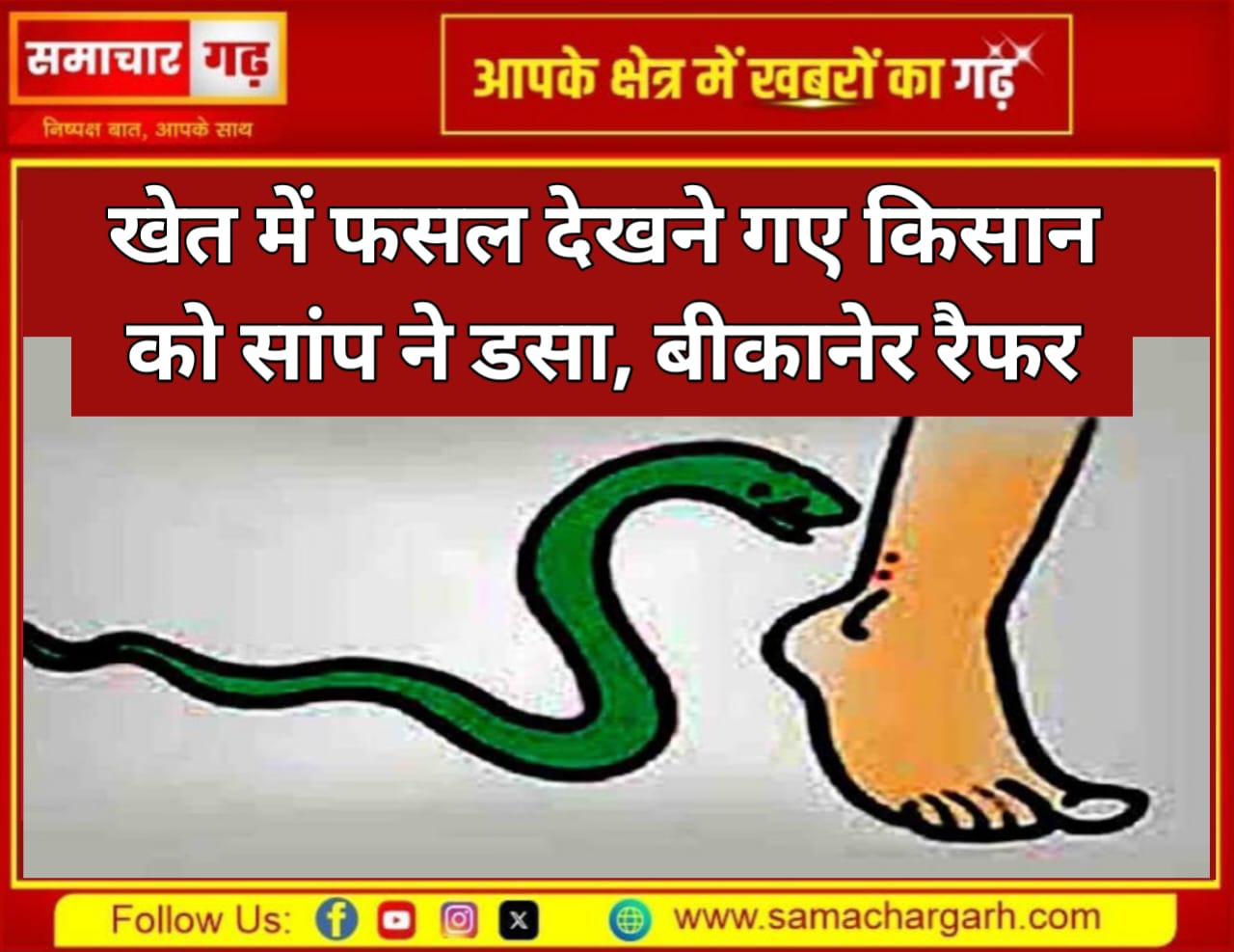 खेत में फसल देखने गए किसान को सांप ने डसा, बीकानेर रैफर