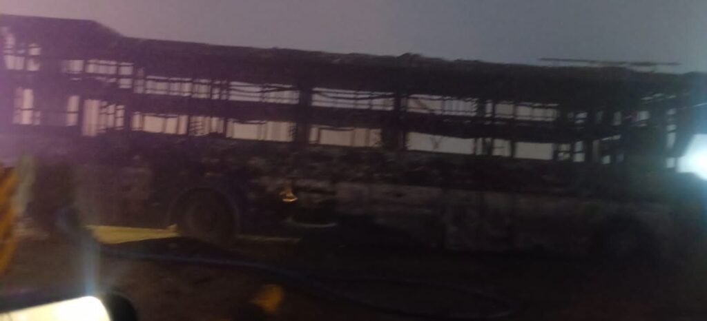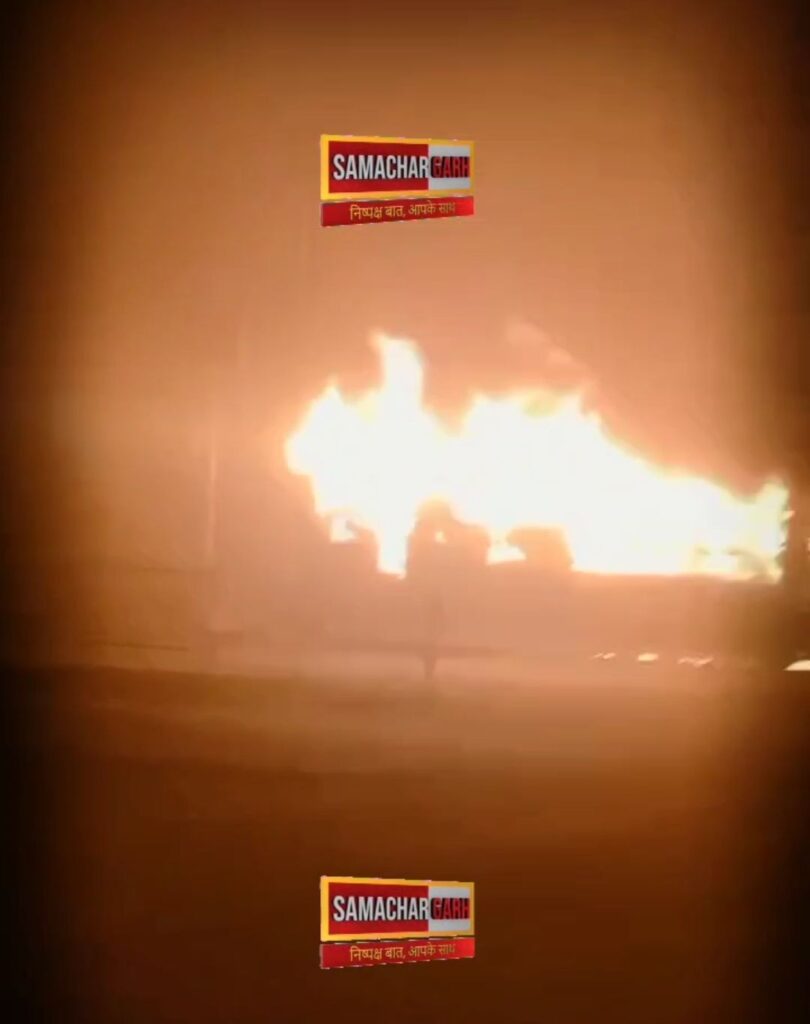 समाचार गढ़। श्रीडूंगरगढ़ क्षेत्र में नेशनल हाइवे पर आज अलसुबह करीब 5 बजे जयपुर से बीकानेर जा रही मिलन ट्रेवल्स की स्लीपर बस चारे से भरे ट्रेलर से टकरा गई। टक्कर इतनी जोरदार थी कि दोनों वाहनों में मौके पर ही आग लग गई। नाइट ड्यूटी ऑफिसर हेडकांस्टेबल बलवीर सिंह काजला ने बताया कि ट्रेलर पहले एक ट्रक से टकराकर रुक गया था, तभी पीछे से तेज रफ्तार बस ने उसे टक्कर मार दी। बस में आग लगते ही ऑटो लॉक हो गया, सवारियां अंदर फंस गईं। लेकिन पीछे बने आपातकालीन द्वार से बड़ी मुश्किल से सभी को बाहर निकाला गया। हादसा सेसोमू स्कूल के पास हुआ, जहां 2 घंटे हाइवे बंद रहा। फायर ब्रिगेड ने किसी तरह आग पर काबू पाया। पूरी बस और ट्रेलर जलकर खाक हो गए, सवारियों का लाखों का सामान भी स्वाहा। बस चालक को चोटें आईं, उसे बीकानेर रेफर किया गया है।