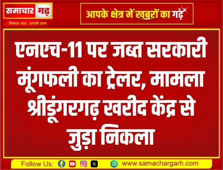 एनएच-11 पर जब्त सरकारी मूंगफली का ट्रेलर, मामला श्रीडूंगरगढ़ खरीद केंद्र से जुड़ा निकला