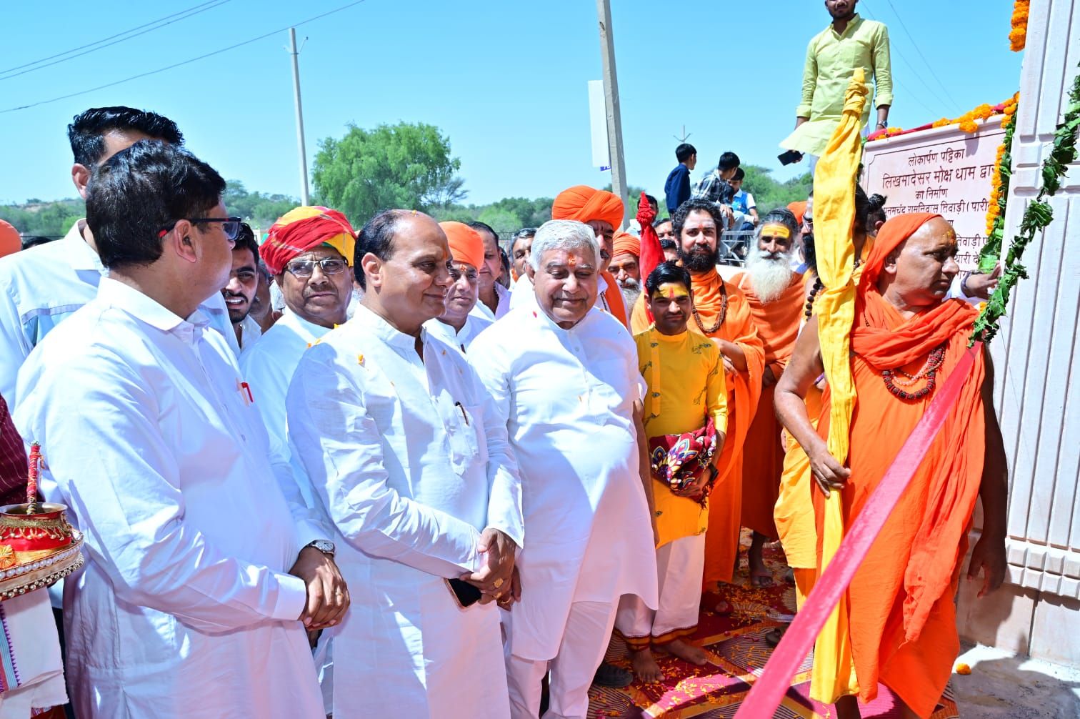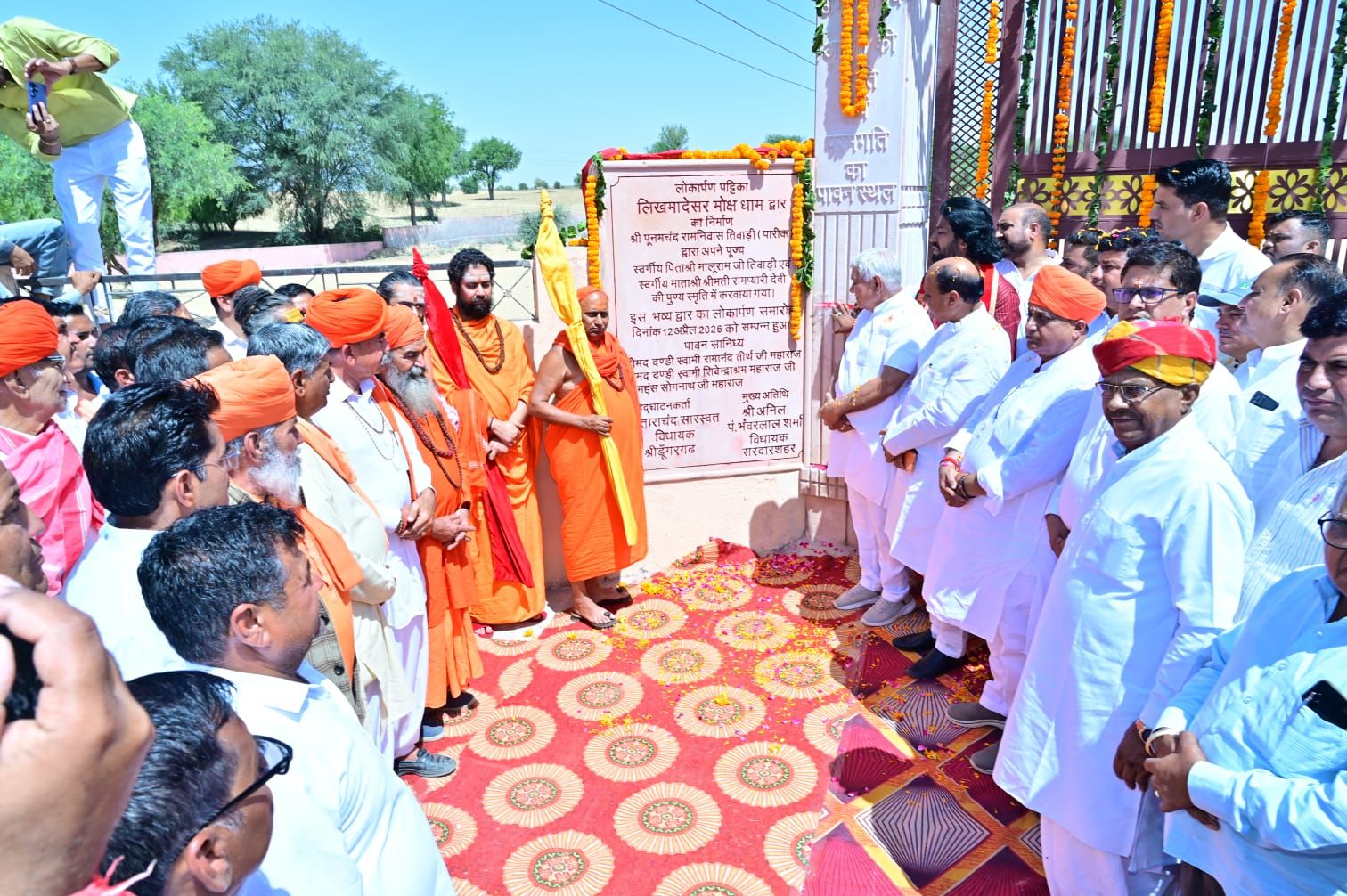 समाचार गढ़ 12 अप्रैल 2026। लिखमादेसर में मोक्ष धाम के द्वार का निर्माण पूनमचंद रामनिवास तिवाड़ी परिवार द्वारा करवाया गया, जिसका रविवार को समारोह पूर्वक संतो के सान्निध्य में लोकार्पण किया गया। पूनमचंद रामनिवास तिवाड़ी द्वारा अपने दिवंगत माता पिता मालूराम तिवाड़ी व रामप्यारी देवी की स्मृति में करवाया गया। द्वार की भव्य सजावट की गई व फीता काटकर विधिवत लोकार्पण संपन्न किया गया। विधायक अनिल शर्मा व ताराचंद सारस्वत ने दानदाता परिवार का सम्मान करते हुए आभार जताया। इस दौरान बड़ी संख्या में मौजिज ग्रामीणों की उपस्थिति रही।