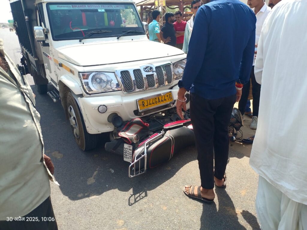 समाचारगढ़ 30 अप्रैल 2025 रीड़ी बस स्टैंड के पास रविवार को एक पिकअप और बाइक में टक्कर हो गई, जिससे बाइक सवार युवक गंभीर रूप से घायल हो गया। हादसे की सूचना मिलते ही डॉ. एपीजे अब्दुल कलाम वेलफेयर सोसायटी की क्विक एंबुलेंस मौके पर पहुंची और घायल को प्राथमिक उपचार के लिए श्रीडूंगरगढ़ उपजिला अस्पताल ले जाया गया।