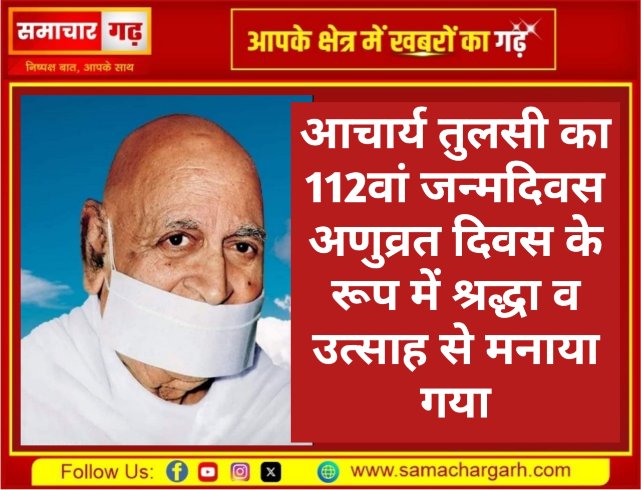 समाचार गढ़ 23 अक्टूबर 2025 तेरापंथ धर्मसंघ के नवम अनुशास्ता आचार्य तुलसी का 112वां जन्मदिवस गुरुवार को अणुव्रत दिवस के रूप में श्रद्धा और उत्साह से मनाया गया। यह भावपूर्ण आयोजन श्रीडूंगरगढ़ सेवाकेंद्र मालू भवन में सेवा केंद्र व्यवस्थापिका साध्वी संगीतश्री और डॉ. साध्वी परमप्रभा के सान्निध्य में संपन्न हुआ।