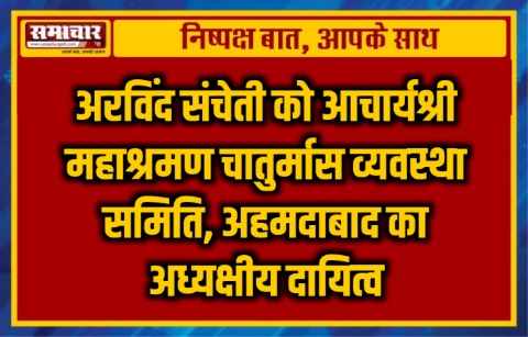 अरविंद संचेती को आचार्यश्री महाश्रमण चातुर्मास व्यवस्था समिति, अहमदाबाद का अध्यक्षीय दायित्व