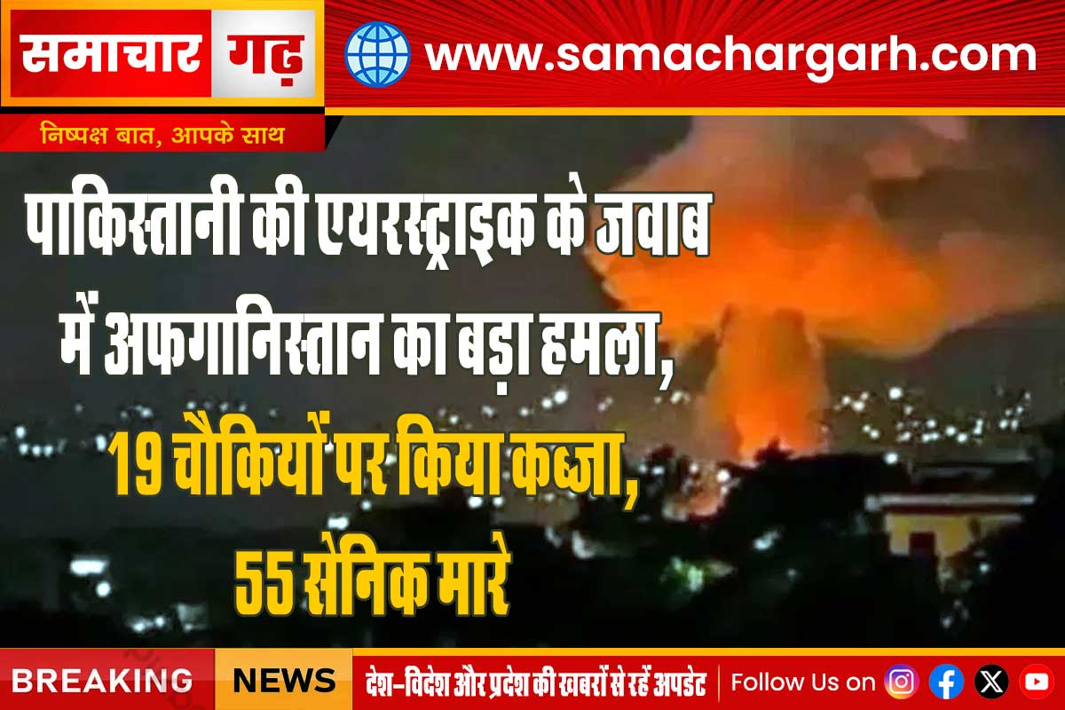 समाचार गढ़ 27 फरवरी 2026। देश दुनिया की बड़ी खबर में शुक्रवार सुबह की बिग ब्रकिंग पड़ौसी देश पाकिस्तान और अफगानिस्तान से आई है। पाकिस्तानी एयरस्ट्राइक के जवाब में अफगानिस्तान ने करारा जवाबी हमला किया है। पाकिस्तान के एक चेक प्वाइंट और 19 चौकियों पर कब्जा कर लिया और 55 पाकिस्तानी सैनिकों को मार गिराने और कई को जिंदा पकड़ने का दावा किया।