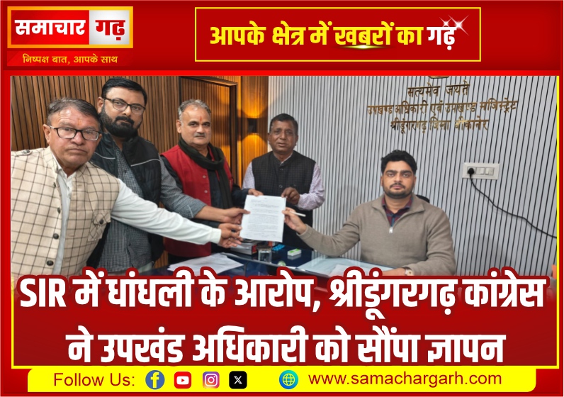 SIR में धांधली के आरोप, श्रीडूंगरगढ़ कांग्रेस ने उपखंड अधिकारी को सौंपा ज्ञापन