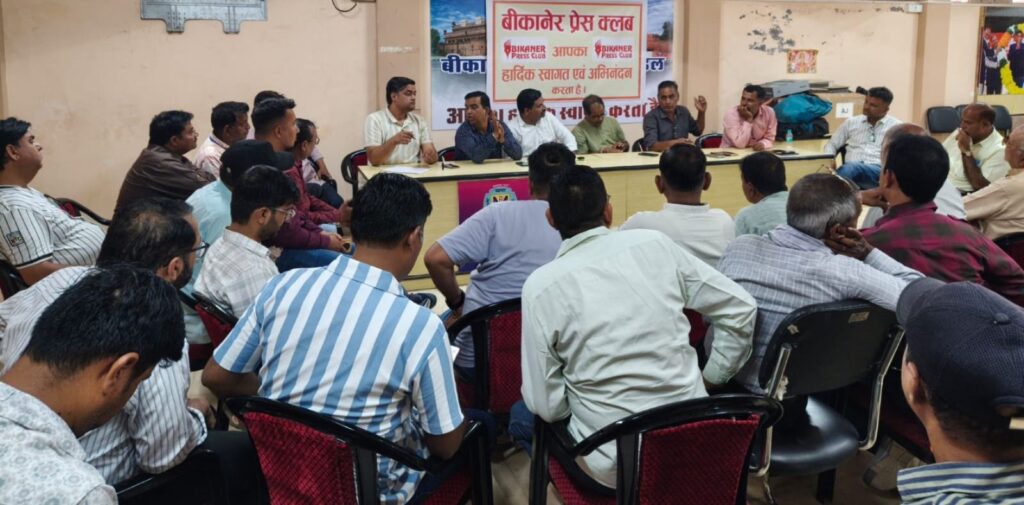 समाचार गढ़, बीकानेर 26 अप्रैल 2026। बीकानेर प्रेस क्लब की साधारण सभा बैठक रविवार को बीकानेर उद्योग व्यापार मंडल भवन में क्लब अध्यक्ष कुशाल सिंह मेड़तिया की अध्यक्षता में आयोजित हुई। आम सभा का संचालन करते हुए क्लब महासचिव विशाल स्वामी ने पूर्व में कार्यसमिति बैठक में पारित प्रस्तावों की जानकारी दी। स्वामी ने बताया कि बीकानेर के वरिष्ठ उद्योगपति फन्न बाबू को 2 मिनिट के मौन से श्रद्धांजलि देने से शुरू हुई बैठक में सर्व सम्मति से प्रेस क्लब के लिए भूमि एवं भवन आवंटन के लिए प्रयास तेज करने एवं इसके लिए वरिष्ठ पत्रकारों की कमेटी बना कर प्रशासन एवं राजनेताओं से संवाद करने का निर्णय लिया गया। इसी प्रकार क्लब के संविधान में बदलाव करते हुए सदस्यता अभियान चलाने का निर्णय लिया गया। नए सदस्यता अभियान के तहत 5 सालों से अधिक समय से विभिन्न पंजीकृत मीडिया संस्थानों में पत्रकारिता कर रहे पत्रकारों को ही क्लब का साधारण सदस्य बनाने, लगातार दो बार से अधिक सदस्य बने रहने पर मतदान अधिकार मिलने, 15 साल से अधिक पत्रकारिता कर चुके पत्रकारों को आजीवन सदस्य बनाने, सेवानिवृत्त हो चुके पत्रकारों को संरक्षक सदस्य बनाने का निर्णय लिया गया। इसी प्रकार बीकानेर क्षेत्र के वरिष्ठ सामाजिक, राजनीतिक, व्यापारिक एवं विभिन्न सेवाओ में पदस्थापित प्रबुद्धजनों को क्लब का मानद सदस्य बनाने का निर्णय भी लिया गया। बैठक में भूखंड से वंचित पत्रकारों को भूखंड आवंटन के प्रयास करने, पत्रकारों के लिए प्रशिक्षण कार्यशाला आयोजित करने के निर्णय भी लिए गए। बैठक में पूर्व अध्यक्ष जयनारायण बिस्सा, अनुराग हर्ष, भवानी जोशी, वर्तमान कोषाध्यक्ष गिरिराज भादानी में मंचासीन रहे। बैठक में कार्यकारिणी सदस्य राजा जोशी, निखिल स्वामी व