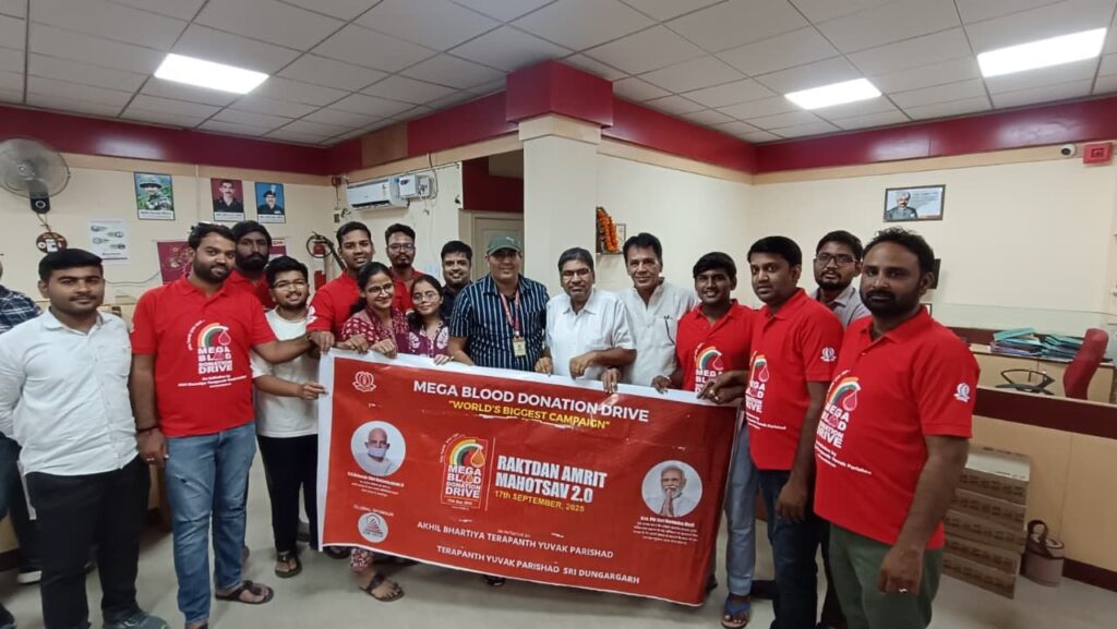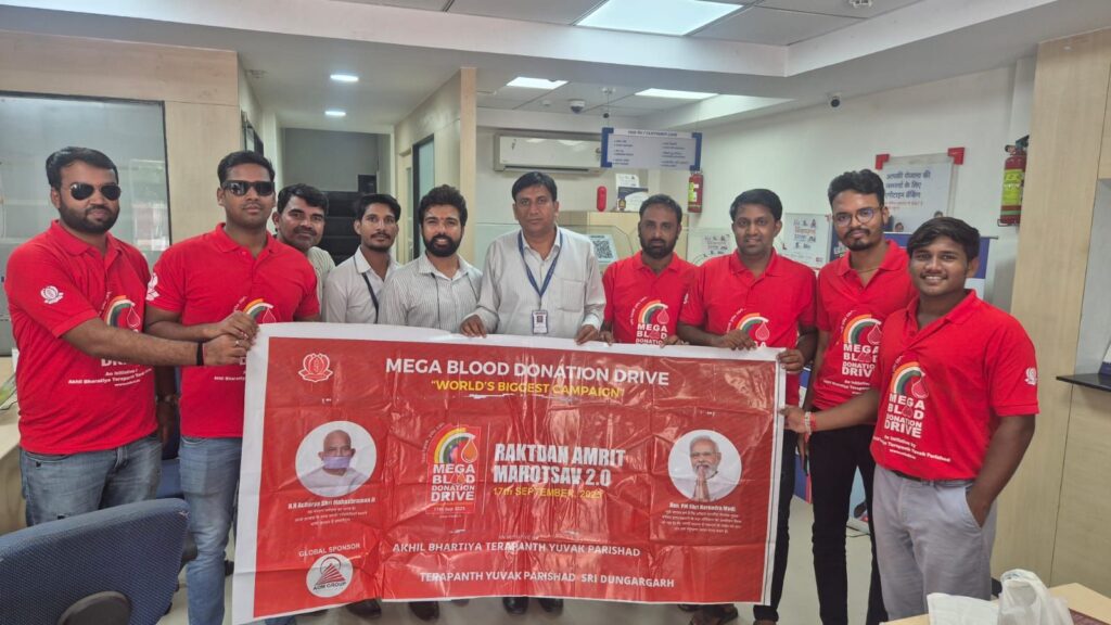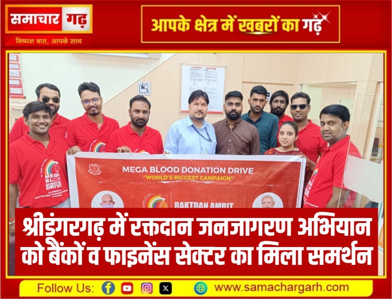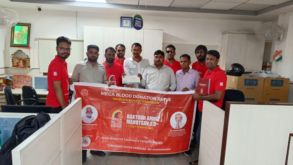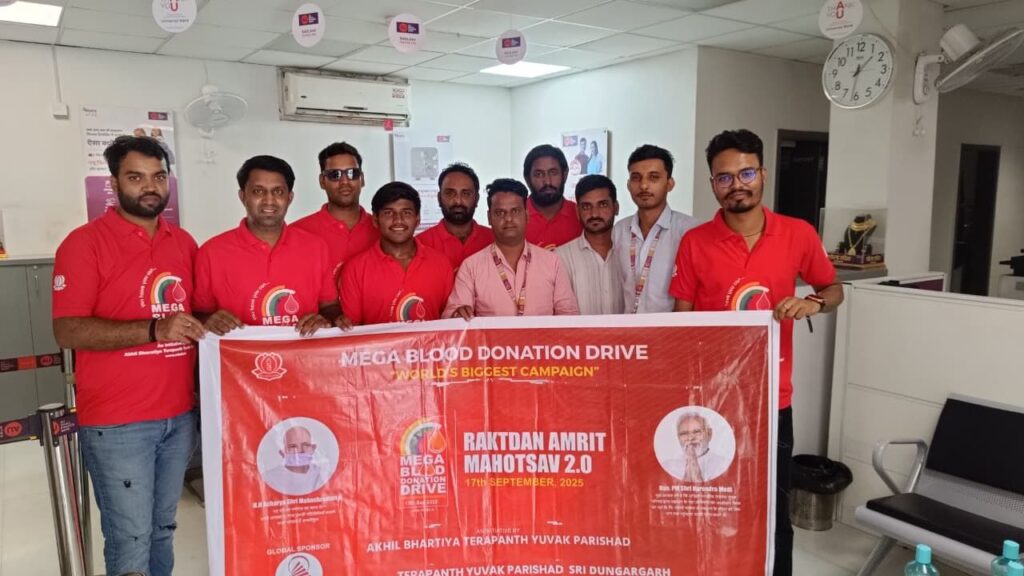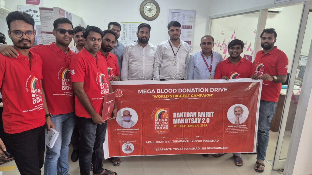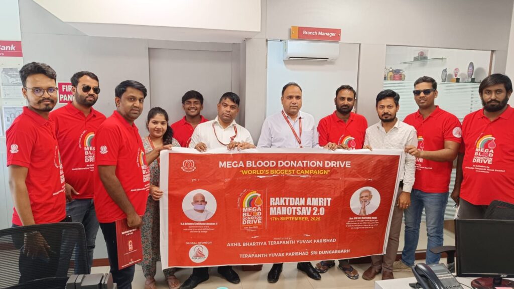 आगामी 17 सितम्बर को तेरापंथ भवन ऊपरलो, श्रीडूंगरगढ़ में आयोजित होने जा रहे MBDD रक्तदान अमृत महोत्सव 2.0 के जनजागरण अभियान को नगर के सभी प्रमुख वित्तीय संस्थानों ने अपना पूरा सहयोग दिया है।