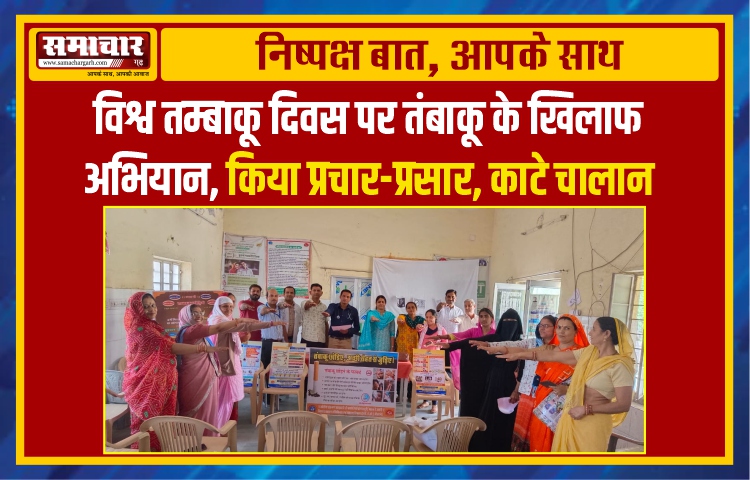 समाचार-गढ़, 31 मई 2023। विश्व तंबाकू दिवस पर श्रीडूंगरगढ़ में तंबाकू छुड़वाने के लिए सरकारी अस्पताल में डॉक्टरों की टीम ने तंबाकू के खिलाफ प्रचार-प्रसार किया। अस्पताल में डॉ. एसके बिहाणी की अध्यक्षता में आयोजित कार्यक्रम में डॉक्टरों की टीम ने तंबाकू के खिलाफ अभियान चलाया। अस्पताल परिसर के आस पास तंबाकू बेचने वाले व परिसर में गुटका खाने वाले 30 जनों के खिलाफ चालान काटे। गए। वहीं अस्पताल में आने वाले मरीजों व परिजनों के साथ समझाईश की। इसके अलावा अस्पताल के हॉल में कार्मिकों की जागरूकता बैठक ली गई। अभियान के तहत डॉक्टर प्रियंका विश्नोई, काउंसलर मदनलाल मीणा, डीईओ मोहम्मद अनवर खान, रेडियोग्राफर प्रवीण कुमार लंबोरिया, रमाकांत शर्मा सक्रिय रहें। टीम ने तंबाकू के नकारात्मक प्रभावों की चर्चा करते हुए इनसे बचने की बात कही।