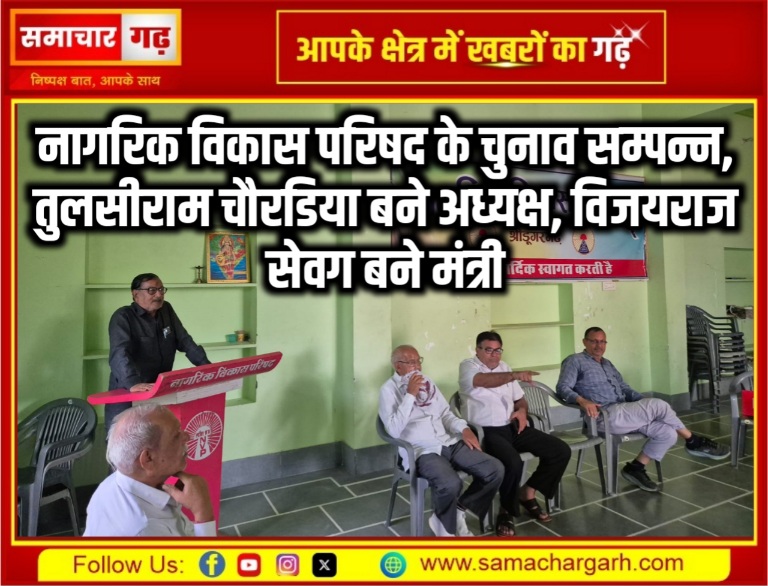 समाचार गढ़, 24 अगस्त 2025, श्रीडूंगरगढ़। वर्ष 1978 से पीड़ित मानवता की सेवा में जुटी सामाजिक संस्था नागरिक विकास परिषद के द्विवार्षिक आम चुनाव रविवार को सम्पन्न हुए। निर्वाचन अधिकारी ताराचंद इंदौरिया के निर्देशन में हुए चुनाव में सर्वसम्मति से तुलसीराम चौरडिया अध्यक्ष और विजयराज सेवग मंत्री निर्वाचित हुए।