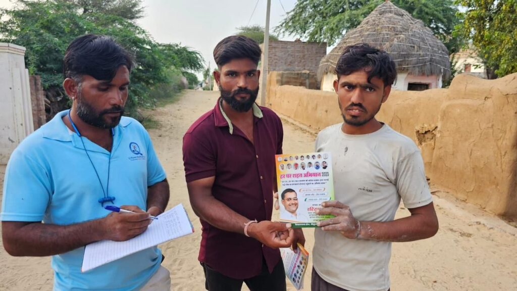 समाचार-गढ़, श्रीडूंगरगढ़, 17 अगस्त 2023। सरकार की जनकल्याणकारी योजनाओं की विस्तार से जानकारी युवा नेता हरिराम बाना के नेतृत्व में दी जा रही है। कांग्रेसी अभियान के तहत हर गाँव, हर घर तक पहुंच रहे है और अभियान को सफल बना रहे है। कांग्रेस, एनएसयुआई, सेवादल आदि कार्यकर्ताओं द्वारा राज्य सरकार की योजनाओं से वंचित पात्र लोगों को जोड़ने का काम किया जा रहा है। आज गुरूवार को बाना की अगुवाई में कार्यकर्ताओं की टीम गांव राजेडू, बापेउ, सोनियासर मिठिया, सोनियासर शिवदानसिंह, सोनियासर गोदारान, सोनियासर गोगलियान व सोनियासर ऊंचाईडा में पहुंचें। कार्यकर्ताओं द्वारा इन गांवों के सभी घरों में पुस्तक वितरण के दौरान बाना इन गांवों के वरिष्ठ कांग्रेसी कार्यकर्ताओं से मुलाकात कर रहे है एवं जनता को महंगाई से राहत स्थाई मिलते रहने के लिए हर हाल में कांग्रेस सरकार वापसी की आवश्यकता को समझाते हुए आगामी चुनावों में एकजुटता के साथ कांग्रेस को जिताने का आह्वान कर रहे है। यूथ कांग्रेस विधानसभा अध्यक्ष संतोष गोदारा ने बताया कि हर घर राहत अभियान के दूसरे चरण का समापन रविवार को गांव सूडसर में हर घर राहत सम्मेलन के साथ होगा। सम्मेलन में सूडसर एवं उसके आस पास के गांवो के कांग्रेसी कार्यकर्ता शामिल होगें एवं कई जिला एवं राज्य स्तरीय कांग्रेस नेताओं द्वारा पार्टी हित में मार्गदर्शन दिया जाएगा।