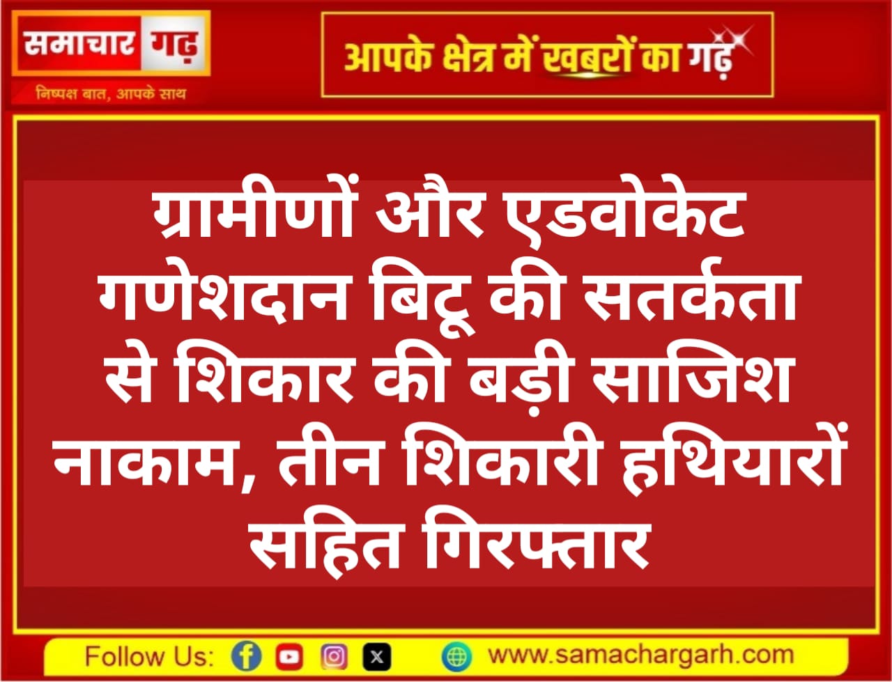समाचार गढ़ 17 अक्टूबर 2025 नापासर थाना क्षेत्र में ग्रामीणों और एडवोकेट गणेशदान बिटू की सूझबूझ से शिकार की एक बड़ी योजना पर पानी फिर गया। शुक्रवार को नापासर–गुसाईसर सड़क स्थित हिंगलाज माता मंदिर के पास तीन शिकारियों को जाल और हथियारों सहित रंगे हाथों पकड़ लिया गया।