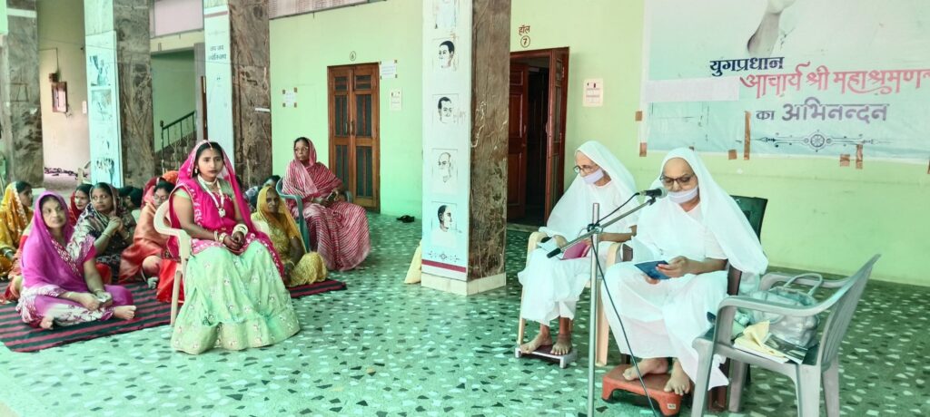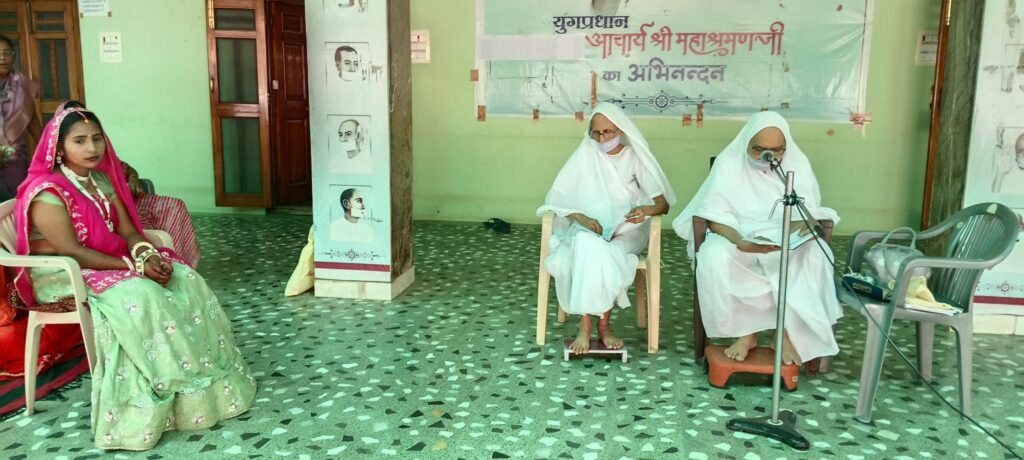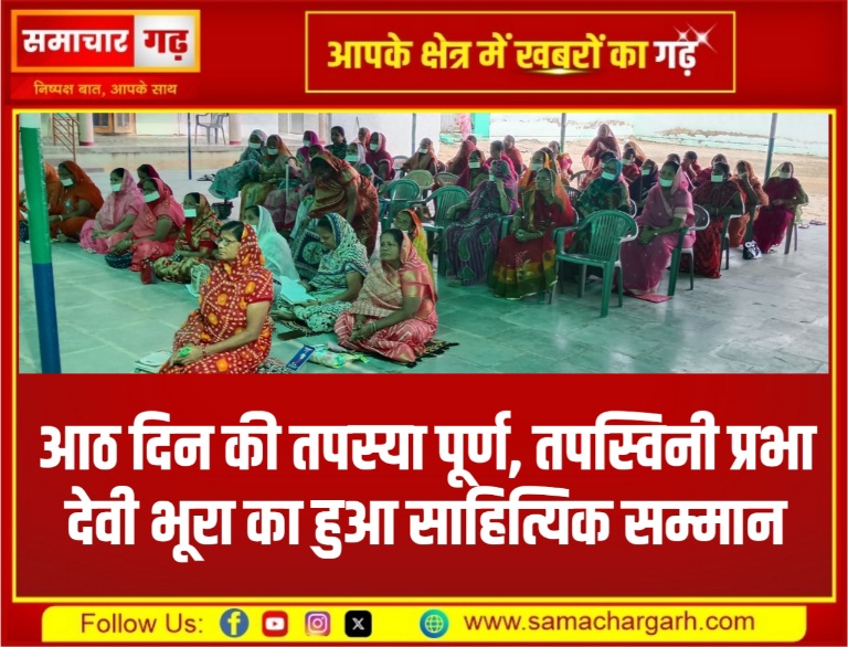 समाचार गढ़, 3 सितंबर 2025, श्रीडूंगरगढ़। श्रीडूंगरगढ़ सेवाकेंद्र मालू भवन में बुधवार को साध्वी संगीतश्री एवं डॉ. परमप्रभा के सान्निध्य में प्रभा देवी भूरा की 8 की तपस्या पर विशेष कार्यक्रम आयोजित हुआ। तपस्विनी की अनुमोदना में श्री जैन तेरापंथी सभा से महेंद्र मालू, युवक परिषद सहमंत्री प्रथम सुमित बरडिया, महिला मंडल से मगनश्री सेठिया, तथा परिवार से मीनू देवी मालू और कार्तिक मालू ने गीतिका व वक्तव्य प्रस्तुत कर भावनाएँ व्यक्त कीं। साध्वी संगीतश्री और डॉ. परमप्रभा ने तपस्विनी बहिन के त्याग व साधना की अनुमोदना करते हुए मंगलकामनाएँ दीं। कार्यक्रम में तेरापंथी सभा उपाध्यक्ष दीपमाला डागा, मंत्री प्रदीप पुगलिया, चिकित्सा प्रभारी अशोक बैद, महिला मंडल अध्यक्ष मंजू बोथरा, मंजू झाबक, बबीता पुगलिया, सरिता नाहटा, सुनीता डागा, संगीता बोथरा, युवक परिषद मंत्री पीयूष बोथरा सहित बड़ी संख्या में गणमान्य लोग उपस्थित रहे। तपस्विनी बहिन का साहित्य से सम्मान भी किया गया। कार्यक्रम का संचालन महिला मंडल उपाध्यक्ष मधु झाबक ने किया।