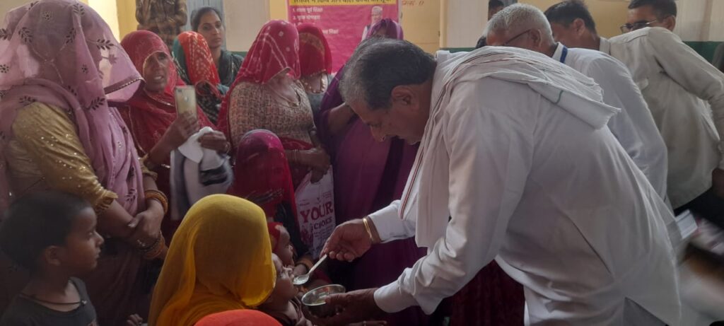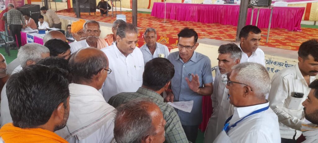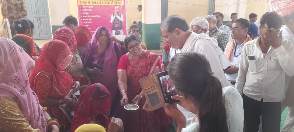 समाचार-गढ़, 12 जून 2023। राजस्थान सरकार द्वारा आमजन को राहत प्रदान करने के लिए महंगाई राहत कैम्प का आयोजन किया जा रहा है पिछले काफी समय से प्रदेश के शहर, कस्बे ओर गांवो में कैम्पों के माध्यम से आमजन को राहत कार्ड दिए जा रहे है। श्रीडूंगरगढ़ में पूर्व विधायक मंगलाराम गोदारा लगातार इन कैम्पों में जाकर आमजन से रूबरू हो रहे है। आज बरजांगसर में गोदारा ने महंगाई राहत केम्प में पहुंचे और गारंटी कार्ड वितरित किये। इस दौरान पूर्व विधायक गोदारा ने गोद भराई भी करवाई। सरकार की जनकल्याणकारी योजनाओं की जानकारी ग्रामीणों को देते हुए सभी को इन योजनाओं से जुड़ने की बात कही। इस दौरान तहसीलदार राजवीर कड़वासरा, सरपंच, सुभाष पूनिया, मीडिया प्रभारी राजेश मंडा सहित अनेक ग्रामीण उपस्थित रहे।