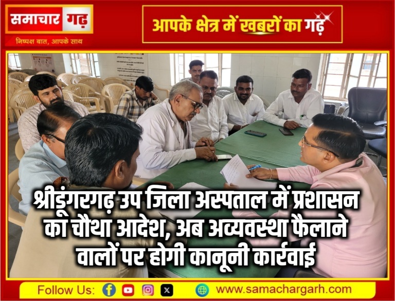 समाचार गढ़, 19 सितंबर 2025, श्रीडूंगरगढ़। उप जिला अस्पताल प्रशासन इन दिनों लगातार आदेश पर आदेश जारी कर रहा है। गुरुवार को जारी आदेशों के बाद शुक्रवार को एक और नया आदेश निकाला गया। यह चौथा आदेश है, जिसमें प्रशासन ने पूर्व के आदेश क्रमांक 1011 व 1012 दिनांक 18.09.2025 को निरस्त करते हुए स्पष्ट किया है कि अब अस्पताल में किसी भी बाहरी व्यक्ति या अस्पताल का कार्मिक यदि अव्यवस्था फैलाते पाया गया तो उसके खिलाफ तत्काल कानूनी कार्यवाही की जाएगी।