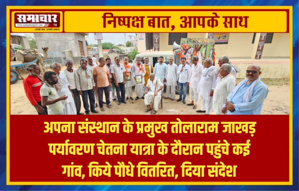 समाचार-गढ़, 24 अगस्त 2023। पर्यावरण संरक्षण तथा प्रकृति के संवर्धन का कार्य वैदिक काल से ऋषि-मुनियों ने किया है। इस ऋषि परंपरा के हम सब लोग वाहक बने। पर्यावरण को लेकर लोगों में जागरूकता अभियान चलाया जाए, ताकि आने वाले समय में हमारी आने वाली पीढ़ी को कोई दिक्कत नहीं हो। मानव जड़ चेतन और पर्यावरण एक- दूसरे पर निर्भर होते हैं ये बात अपना संस्थान श्रीडूंगरगढ़ खण्ड प्रमुख तोलाराम जाखड़ ने आज पर्यावरण जन चेतना यात्रा के दौरान कही। पर्यावरण जन चेतना यात्रा आज श्रीडूंगरगढ़ से धनेरु, रीड़ी, लखासर, जोधासर, झंझेऊ, शेरुणा से होते हुए नापासर की और रवाना हुई। इस यात्रा के दौरान वरिष्ठ कार्यकर्ता कर्मवीर, सुरेंद्र सिंह, वीरेंद्र ने भी लोगों को पर्यावरण को शुद्ध करने के लिए लोगों को जाग्रत किया। यात्रा के साथ अशोक, अजीत सिंह, भैरा राम, धन्ने सिंह, बजरंग सिंह व महेंद्र सिंह आदि मौजूद रहे।