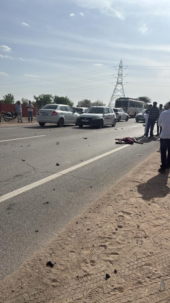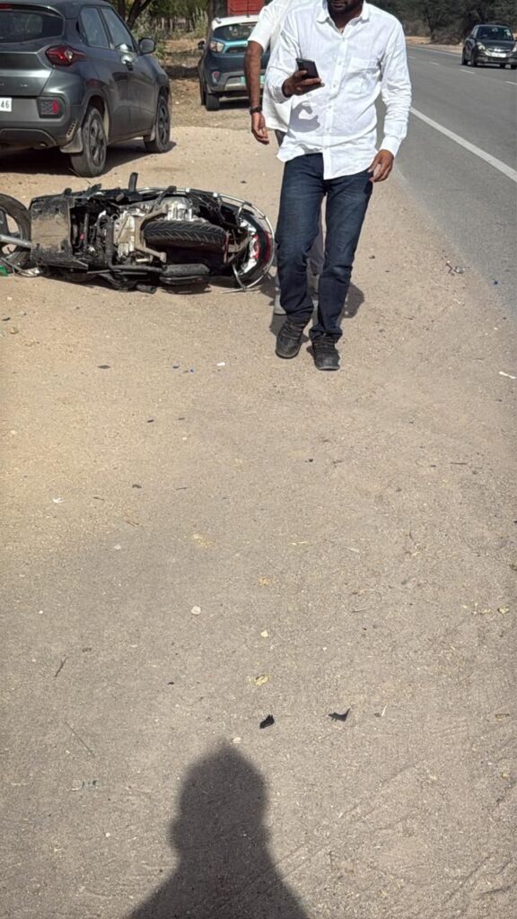 समाचार गढ़ 28 मार्च 2026। हाइवे पर एक हादसे में एक बस और स्कूटी की भिड़ंत में स्कूटी सवार महिला की मौके पर ही मौत हो गई है। हाइवे पर रायसर के निकट बीकानेर की ओर जा रही एक बस व स्कूटी में आमने सामने की टक्कर हुई है। टक्कर ऐसी भीषण थी की महिला का शव बुरी तरह से कुचल गया है। रोड पर वाहनों की कतार लग गई और नापासर थाना पुलिस मौके पर पहुंच गई है।
