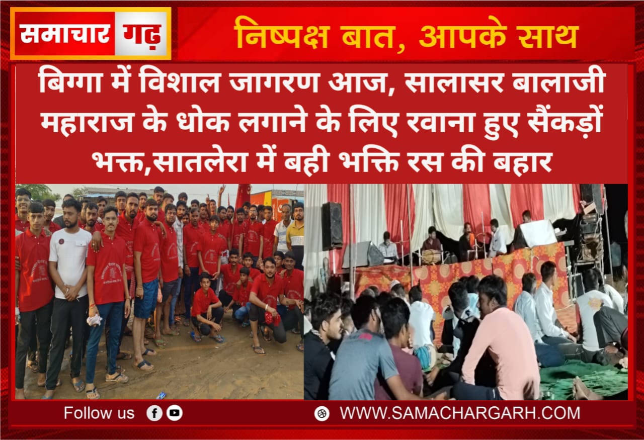 समाचार गढ़ 12 सितम्बर 2024 श्री डूंगरगढ़ बिग्गा से बनवारी जंवरिया की रिपोर्ट भादवा महीना मे हर तरफ जागरणों एवं पैदल यात्री संघों की धूम मची हुई नजर आ रही है।श्री डूंगरगढ़ के बिग्गा गांव में मेघवाल मोहल्ले में बाबा रामदेव जी महाराज के मंदिर पर आज रात्रि विशाल जागरण का आयोजन रखा गया है।