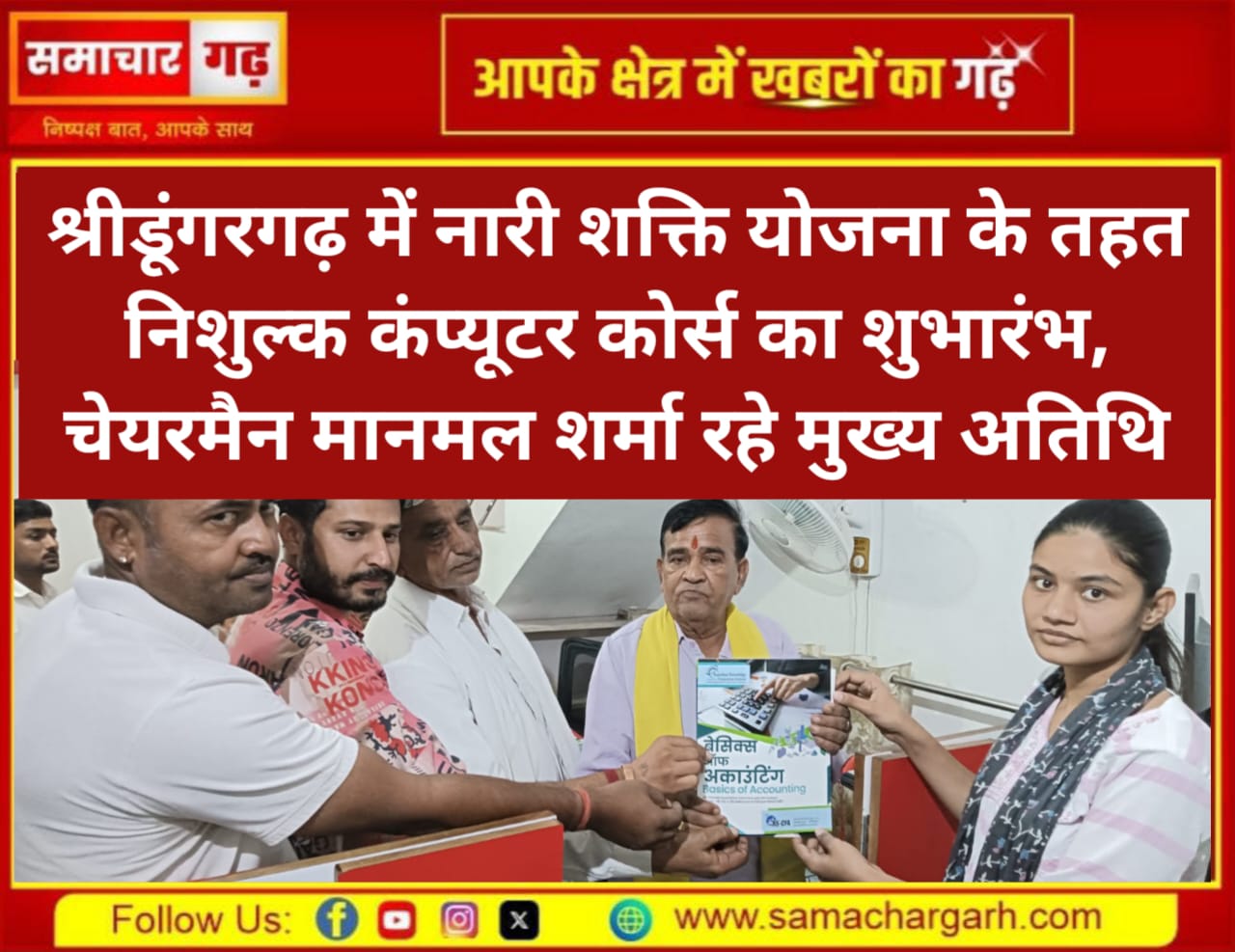 श्रीडूंगरगढ़ में नारी शक्ति योजना के तहत निशुल्क कंप्यूटर कोर्स का शुभारंभ, चेयरमैन मानमल शर्मा रहे मुख्य अतिथि