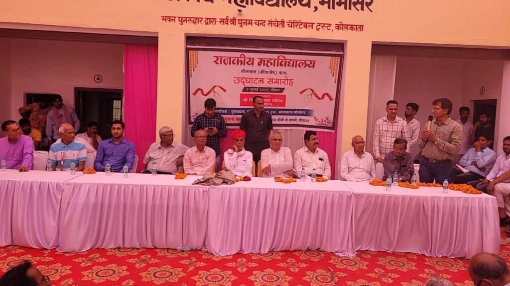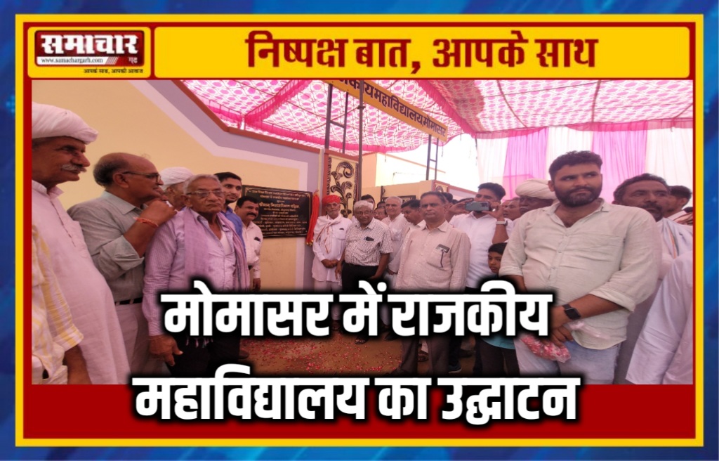 समाचार-गढ़, मोमासर। श्रीडूंगरगढ़ तहसील के मोमासर गांव में नए खुले राजकीय महाविद्यालय का उद्घाटन विधायक गिरधारीलाल महिया ने अस्थाई भवन का फीता काट कर किया। महाविद्यालय उद्घाटन समारोह के अवसर पर अपने प्रबोधन में विधायक महिया ने कहा कि ग्रामीण क्षेत्रों में शिक्षा का महत्व बढाने के लिए गांवों में भी उच्च स्तरीय शैक्षिक संस्थानों का कायम होना आवश्यक है। मोमासर में सरकारी काॅलेज खुलने से निकट के अनेक गांवों के विद्यार्थियों को इसका लाभ प्राप्त होगा।