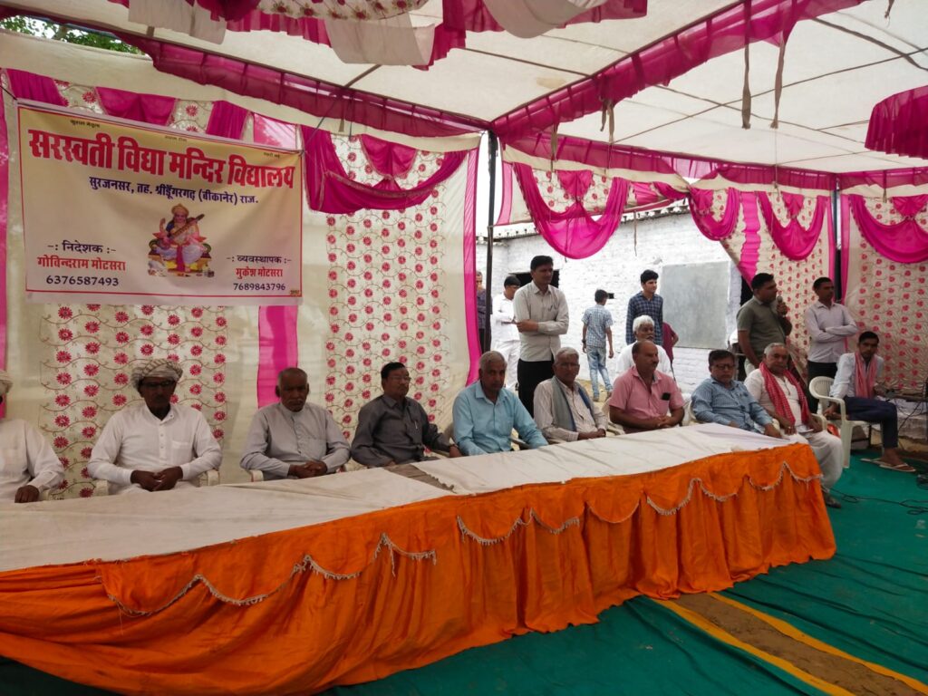 समाचार-गढ़, 17 जून 2023। श्रीडूंगरगढ़ के गांव सुरजनसर में आज शनिवार को नव निर्मित सरस्वती विद्या मंदिर विद्यालय का उद्घटान कस्बे के समाज सेवी तुलसीराम चौरड़िया ने किया। इस अवसर पर उन्होंने कहा कि शिक्षा का दीपक अज्ञान के अंधकार को दूर कर प्रकाशमान बना देता है। उद्घाटन समारोह की अध्यक्षता करते हुए शिक्षक भंवरलाल जानू ने कहा कि बच्चों का चरित्र निर्माण बिना विद्यालयों के संभव नहीं है। विशिष्ट अतिथि साहित्यकार डॉ. मदन सैनी ने अपने वक्तव्य में कहा कि शब्दों के साथ अर्थ को आत्मसात करना ही सच्चे शिक्षार्थी का धर्म है। इस कार्यक्रम में सरपंच ओम प्रकाश गुरावा, पवन कुमार शर्मा, लक्ष्मीनारायण नैण, ज्ञानाराम नाई, किशोर सिंह राजपुरोहित, सागरमल शर्मा, नौरंगाराम डूडी, रामनारायण मोटसरा आदि ने अपने विचार व्यक्त किए। इस अवसर पर आस-पास के गांव के ग्रामीण भी मौजूद रहे। शाला के संचालक गोविंद मोटसरा व मुकेश मोटसरा ने आगंतुक अतिथियों का आभार व्यक्त किया। कार्यक्रम का संयोजन गोरधन डूडी ने किया।