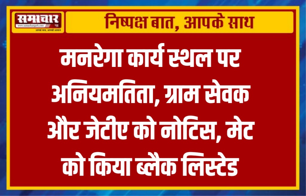जिला कलेक्टर ने मंगलवार को यहां निरीक्षण किया। इस दौरान यहां मापझोख, उपस्थिति सहित अन्य अनियमितताएं पाई गई। इसे गंभीरता से लेते हुए उन्होने जेटीए राजन शर्मा और ग्राम विकास अधिकारी सुरेश दान चरण के विरुद्ध कारण बताओ नोटिस जारी करने के निर्देश दिए। वहीं मेट सुखी को ब्लैक लिस्टेड करने के लिए निर्देशित किया।