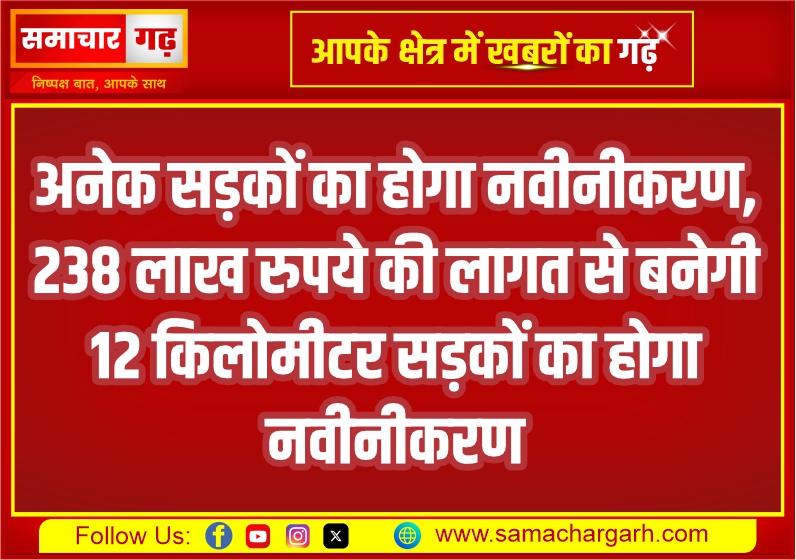 अनेक सड़कों का होगा नवीनीकरण, 238 लाख रुपये की लागत से बनेगी 12 किलोमीटर सड़कों का होगा नवीनीकरण