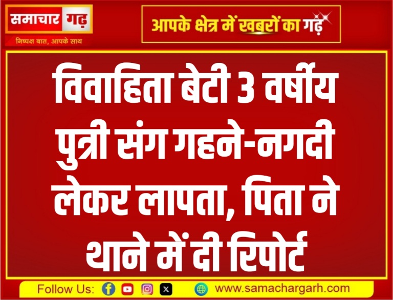 समाचार गढ़, 12 सितंबर 2025, श्रीडूंगरगढ़ अभयसिंहपुरा निवासी भागुराम की 22 वर्षीय विवाहिता बेटी अपने 3 वर्षीय पुत्री और गहने-नगदी लेकर लापता हो गई। पिता ने पुलिस को बताया कि बेटी अपने दो बच्चों संग ससुराल से पीहर आई हुई थी और 9 सितंबर को सुबह करीब 9 बजे ढाणी से गायब हो गई। संदूक से 30 हजार रुपये नगद व सोने-चांदी के गहने (सोने की ठुस्सी, कानों के बाले, नाक की बाली, चांदी की पायल व कड़े) भी नहीं मिले। काफी तलाश के बाद भी सुराग न मिलने पर पिता ने थाने में रिपोर्ट दी। पुलिस ने गुमशुदगी दर्ज कर जांच हैड कांस्टेबल बलवीरसिंह को सौंपी है।