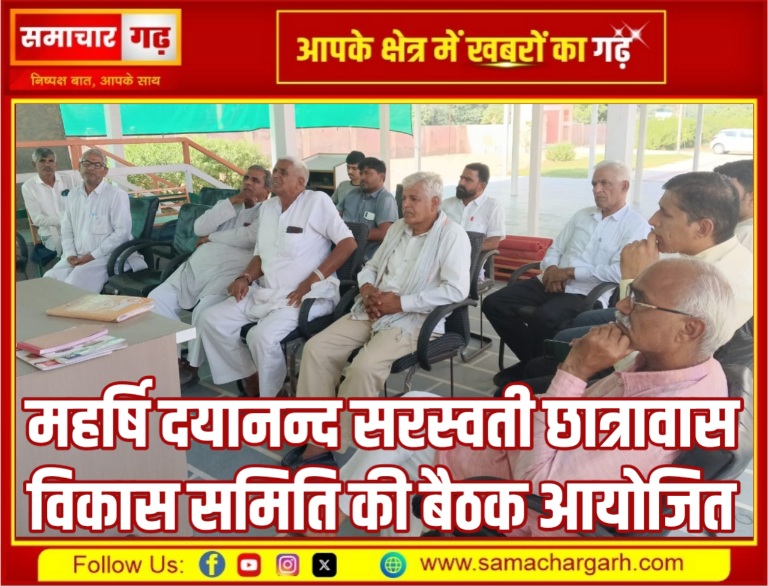 महर्षि दयानन्द सरस्वती छात्रावास विकास समिति की बैठक एडवोकेट श्याम सुन्दर आर्य की अध्यक्षता में आयोजित हुई। मंत्री सुशील सेरडिया ने 3.34 करोड़ की आय-व्यय रिपोर्ट व भवन निर्माण कार्य की प्रगति प्रस्तुत की। बैठक में शिक्षा, समाजहितकारी मुद्दों व नशा जैसी कुप्रथाओं पर चिंता जताई गई। समिति ने 11-11 हजार रुपए न्यूनतम राशि से अधिकाधिक सदस्य जोड़ने का लक्ष्य तय किया।