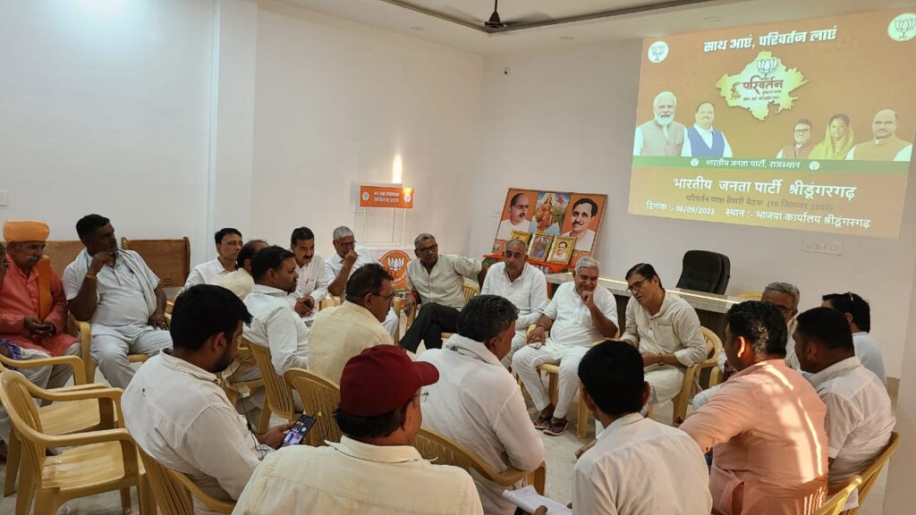 परिवर्तन संकल्प यात्रा की पूर्व तैयारी को लेकर श्रीडूंगरगढ़ भाजपा कार्यालय में चारों मंडल के पदाधिकारियों की हुई मीटिंग, 10 सितम्बर को श्रीडूंगरगढ़ में पहुंचेगी परिवर्तन संकल्प यात्रा