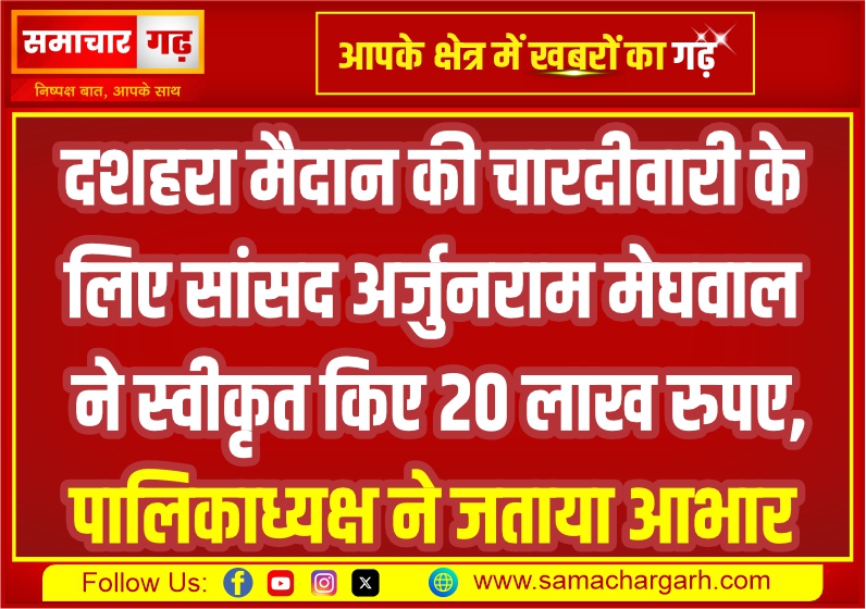 दशहरा मैदान की चारदीवारी के लिए सांसद अर्जुनराम मेघवाल ने स्वीकृत किए 20 लाख रुपए, पालिकाध्यक्ष ने जताया आभार