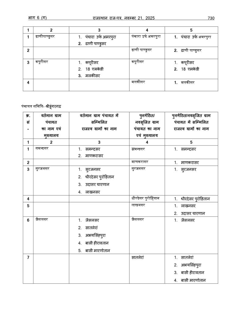 बीकानेर जिले में पंचायत पुनर्गठन की अधिसूचना जारी, श्रीडूंगरगढ़ में बनी 11 नई ग्राम पंचायतें