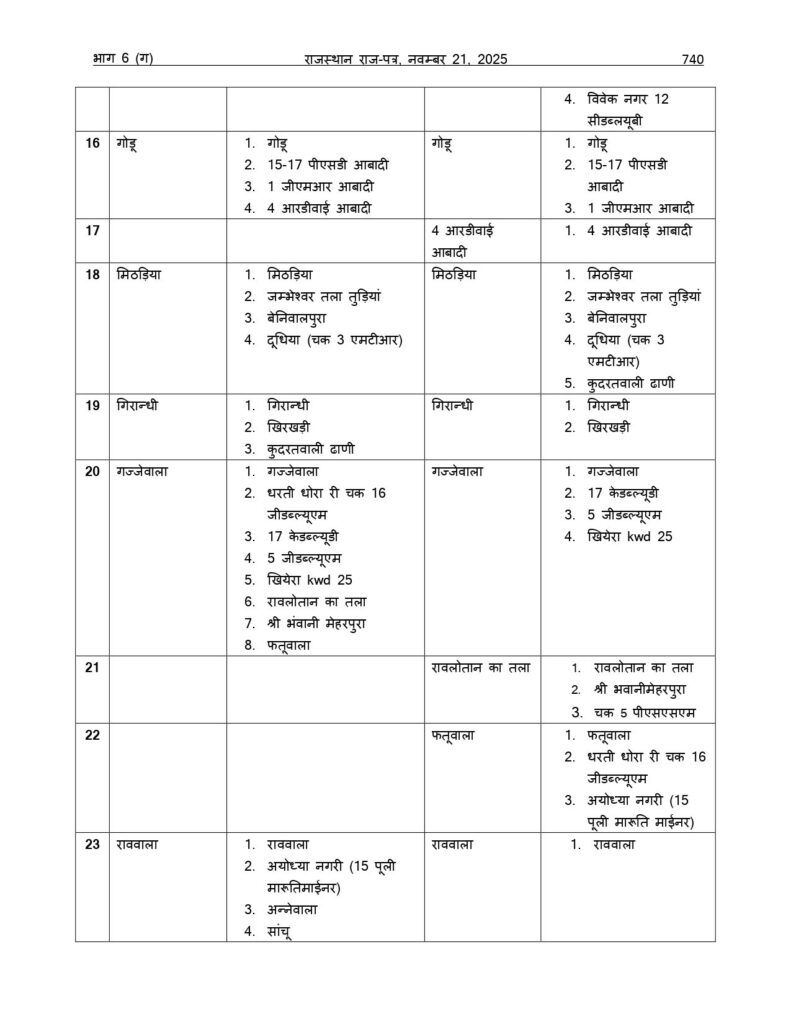 समाचार गढ़, श्रीडूंगरगढ़। राजस्थान सरकार ने बीकानेर जिले में पंचायतों के पुनर्गठन, पुनर्सीमांकन और नवसृजन को मंजूरी देते हुए राजस्थान राजपत्र (विशेषांक) में अधिसूचना जारी कर दी है, जिसके तहत श्रीडूंगरगढ़ क्षेत्र में 11 नई ग्राम पंचायतों का गठन किया गया है। पंचायत पुनर्गठन की यह प्रक्रिया राजस्थान पंचायती राज अधिनियम 1994 की धारा 98 के तहत पूर्ण की गई, जिसमें पहले जिला कलेक्टरों को प्रस्ताव तैयार कर सार्वजनिक अवलोकन हेतु जारी करने, एक माह तक आपत्तियां आमंत्रित करने व उनकी सुनवाई करने के निर्देश दिए गए थे। सभी प्रस्तावों के परीक्षण के बाद राज्य सरकार ने अब अंतिम मंजूरी प्रदान कर दी है। राजपत्र के अनुसार बीकानेर जिले में पुनर्सीमांकित और नवसृजित पंचायतें अनुसूची के नए नामों और नए सीमाक्षेत्रों के अनुसार लागू होंगी, जबकि चुनाव बाद पुरानी पंचायतें स्वतः समाप्त मानी जाएंगी और उनका पूरा कार्यक्षेत्र नई गठित पंचायतों को हस्तांतरित हो जाएगा। अधिसूचना के लागू होने से जिले में पंचायत ढांचे में बड़ा बदलाव देखने को मिलेगा, जिसमें कई गांवों की पंचायत सीमाएं बदलेंगी तथा कुछ क्षेत्रों में पहली बार नई पंचायतें अस्तित्व में आएंगी।