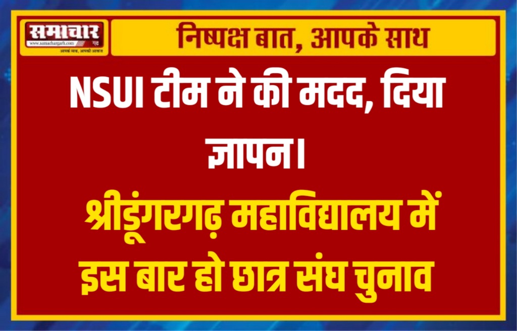 NSUI टीम ने की मदद, दिया ज्ञापन। श्रीडूंगरगढ़ महाविद्यालय में इस बार हो छात्र संघ चुनाव