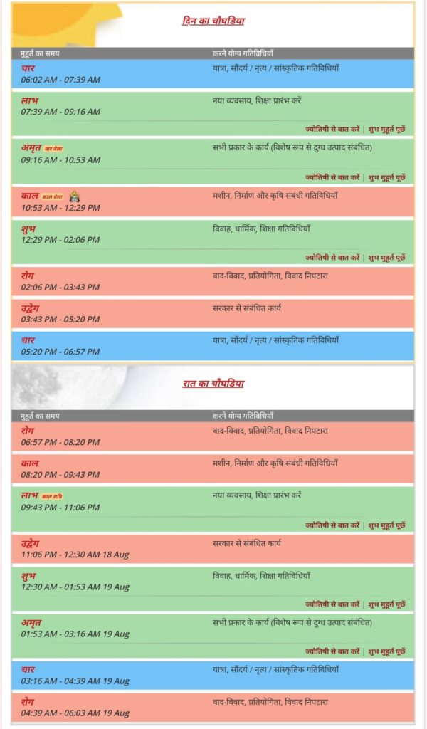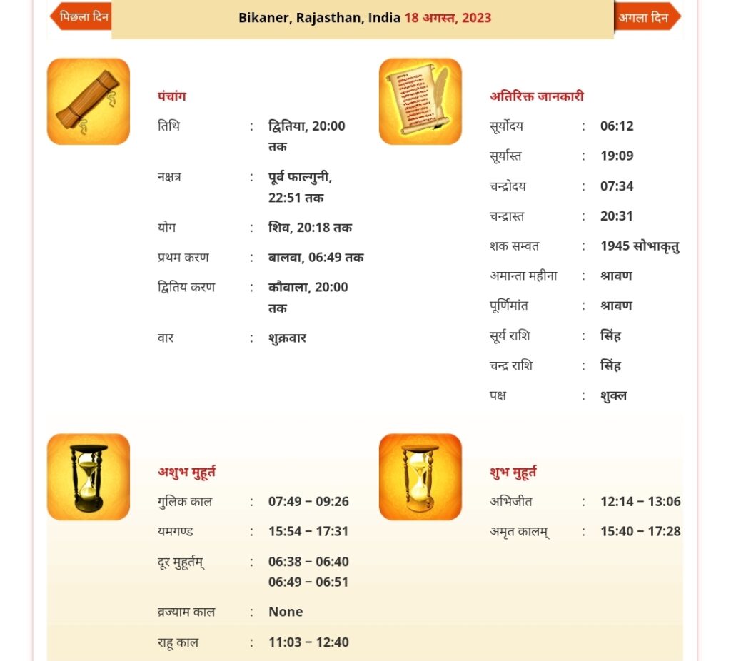 दिनांक 18 अगस्त 2023 का पंचांग