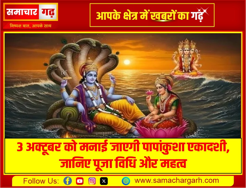समाचार गढ़, 2 अक्टूबर 2025। सनातन धर्म में पापांकुशा एकादशी का विशेष महत्व माना गया है। यह व्रत भगवान विष्णु को समर्पित है और इसे करने से व्यक्ति को जाने-अनजाने में हुए पापों से मुक्ति मिलती है। साथ ही लक्ष्मी जी की कृपा से घर-परिवार में सुख-समृद्धि बनी रहती है।