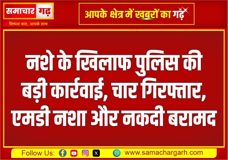 नशे के खिलाफ पुलिस की बड़ी कार्रवाई, चार गिरफ्तार, एमडी नशा और नकदी बरामद