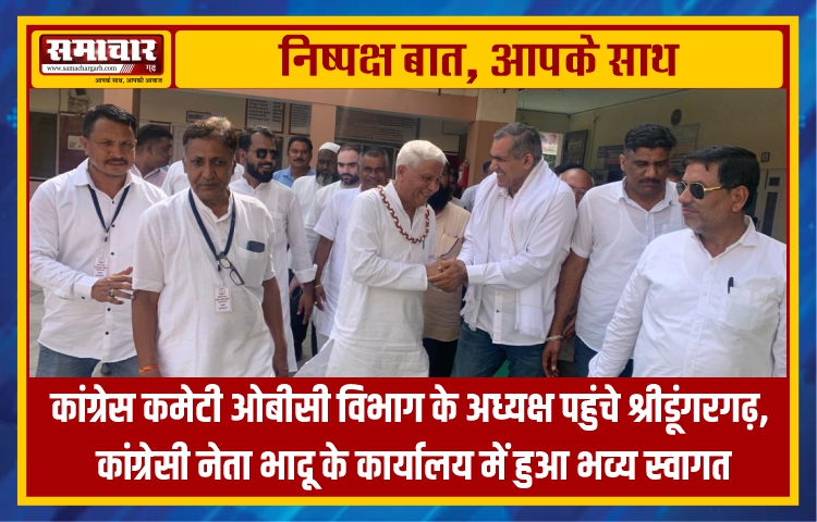 कांग्रेस कमेटी ओबीसी विभाग के अध्यक्ष पहुंचे श्रीडूंगरगढ़, कांग्रेसी नेता भादू के कार्यालय में हुआ भव्य स्वागत