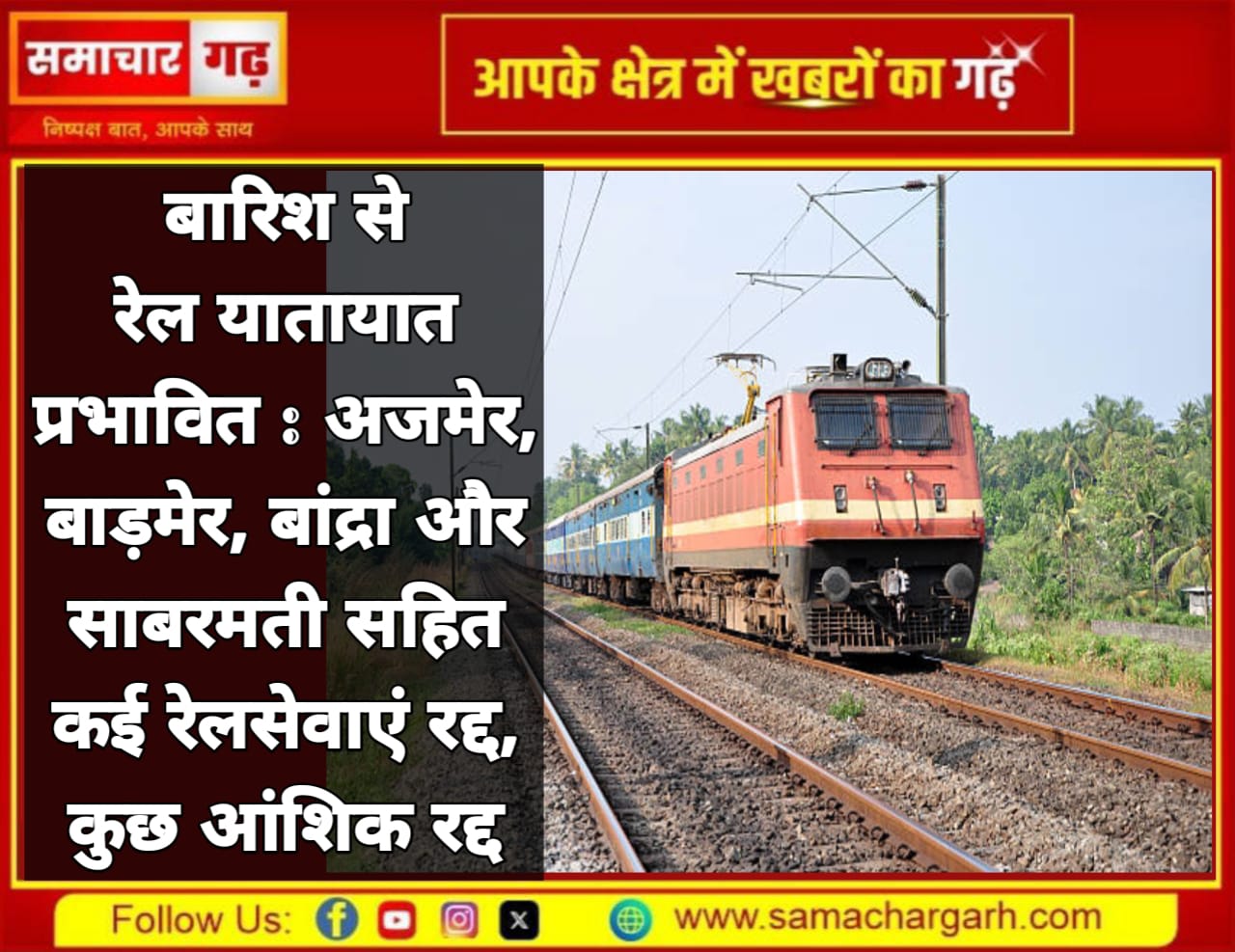 बारिश से रेल यातायात प्रभावित : अजमेर, बाड़मेर, बांद्रा और साबरमती सहित कई रेलसेवाएं रद्द, कुछ आंशिक रद्द