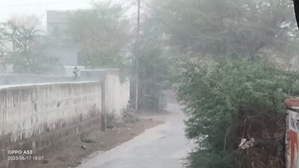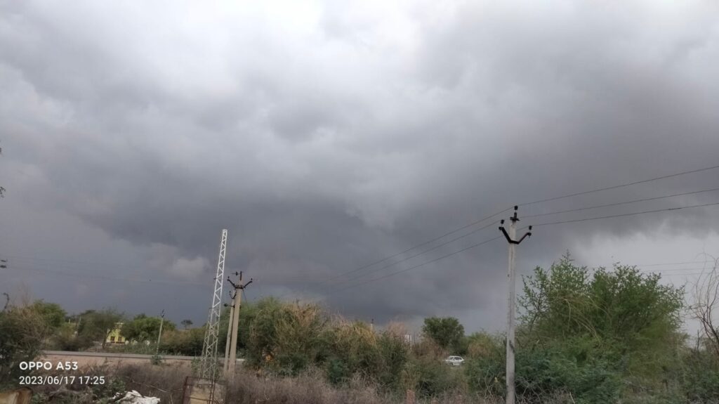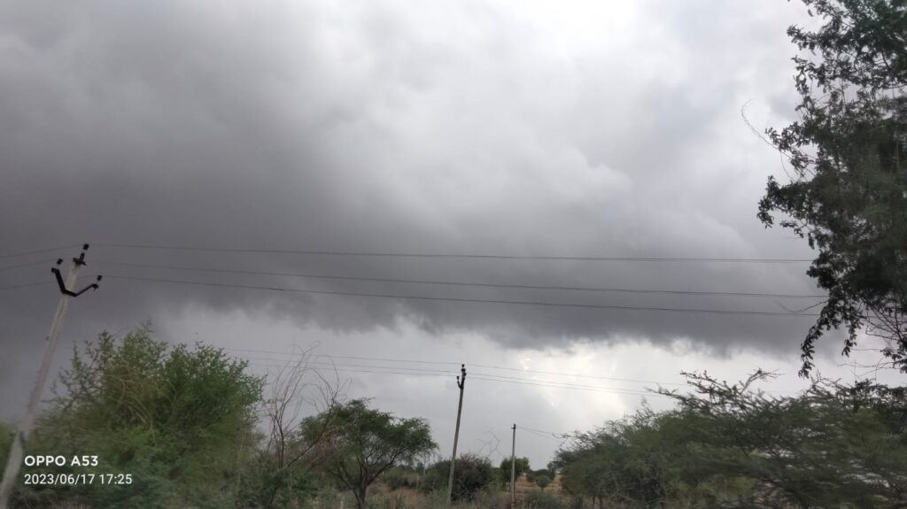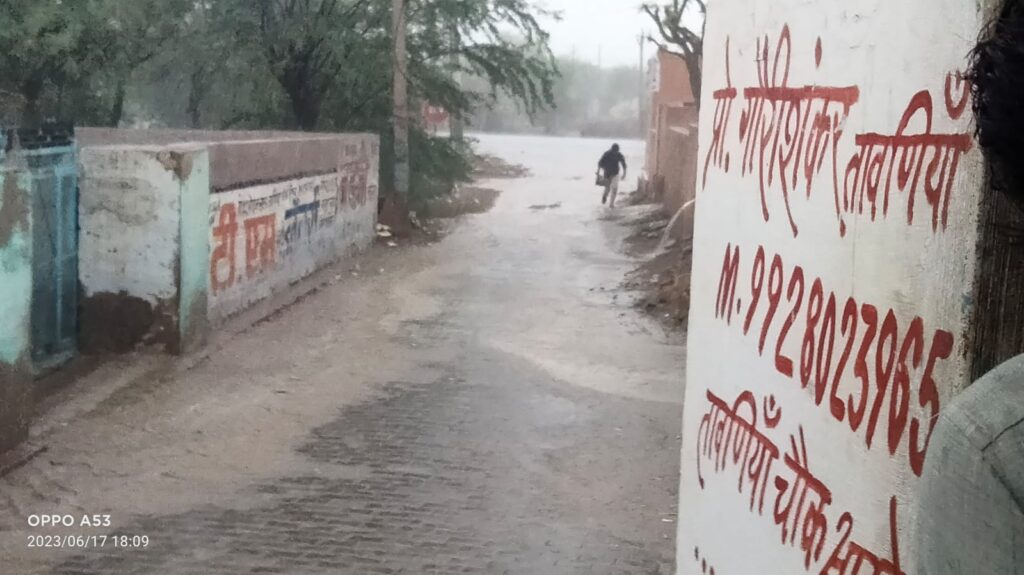 समाचार-गढ़ श्रीडूंगरगढ़ 17 जून 2023। बिपरजॉय तूफान का असर दिखाई देना शुरू हो गया है। तूफान के असर से आज सुबह से ही मौसम पूरी तरह बदला हुआ नजर आया। सुबह से ही आसमान में काले बादलों ने डेरा डाल दिया था और रुक रुक कर बूंदाबांदी होती रही। शाम को दक्षिण दिशा से आई काली घटाओं ने पानी बरसाना शुरू कर दिया। इस दौरान कई गांवो में चार पांच अंगुल से लेकर आठ अंगुल तक बरसात के समाचार मिल रहे हैं। बरसात के बाद गर्मी से राहत जरूर मिली है। पूरे क्षेत्र में फिलहाल रूक रूक कर बूंदाबांदी जारी है।